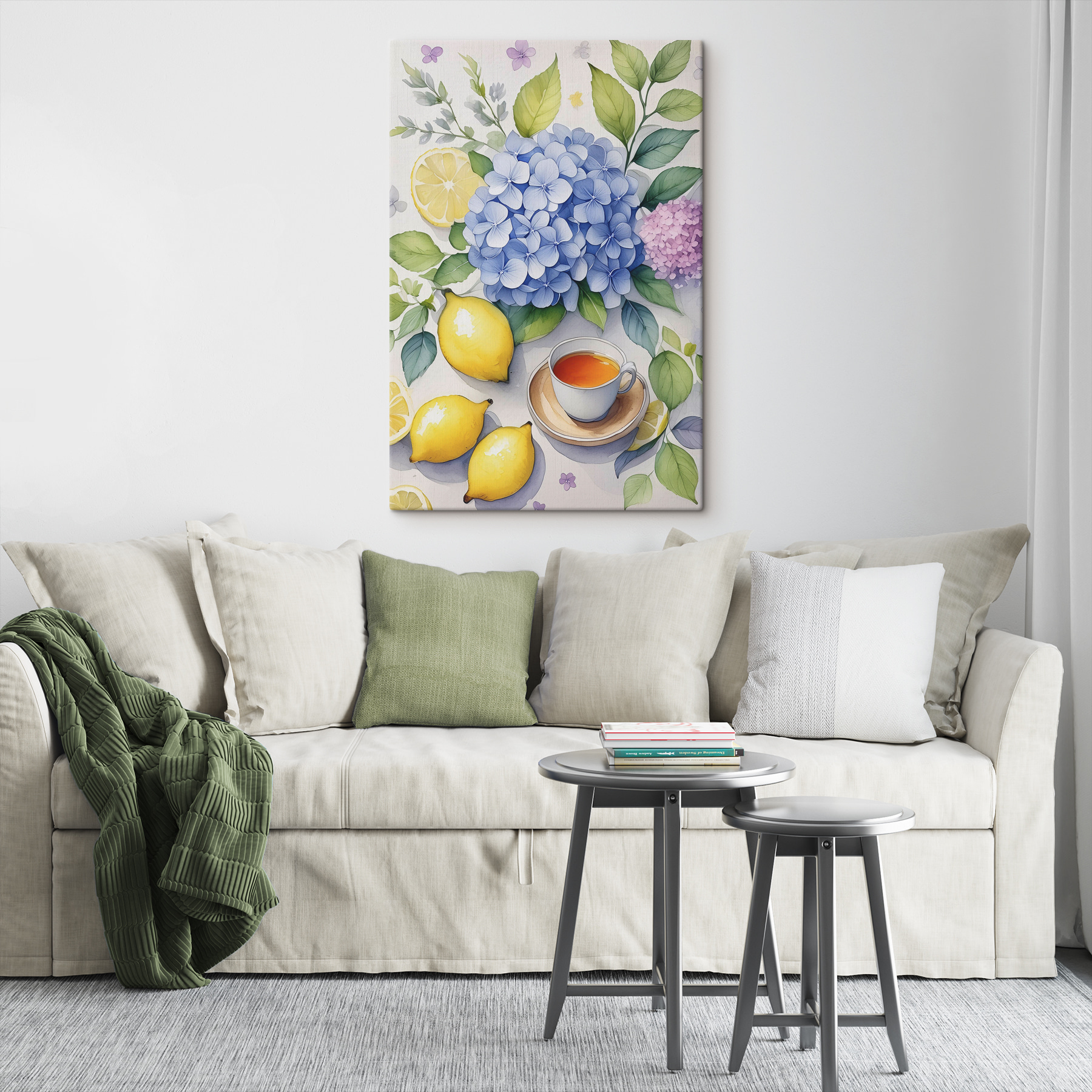 Stellen Sie sich eine gemütliche Ecke vor, in der eine warme Tasse Tee auf die vibrierende Energie von frischen Zitronen und Blumen trifft. Dieser Leinwanddruck “Tee mit Zitronen und Blumen” fängt diesen perfekten Moment der Ruhe ein und erinnert an eine sanfte Brise und den Duft von Zitrusfrüchten, der durch die Luft weht. Die zarten Blüten und die pikanten Früchte harmonieren wunderbar und lassen jede Wand mit Farbe und Charakter lebendig erscheinen. Stellen Sie es sich über einem Schreibtisch oder in einer sonnigen Frühstücksecke vor, wo es das ganze Jahr über einen Hauch von Frühling verströmt. Dieses Stück ist nicht nur Kunst, es ist eine Einladung zum Nippen, Genießen und Entspannen. Jeder Blick kann Sie in einen heiteren Garten entführen, selbst an den hektischsten Tagen. Perfekt für alle, die die einfachen Freuden des Lebens zu schätzen wissen.