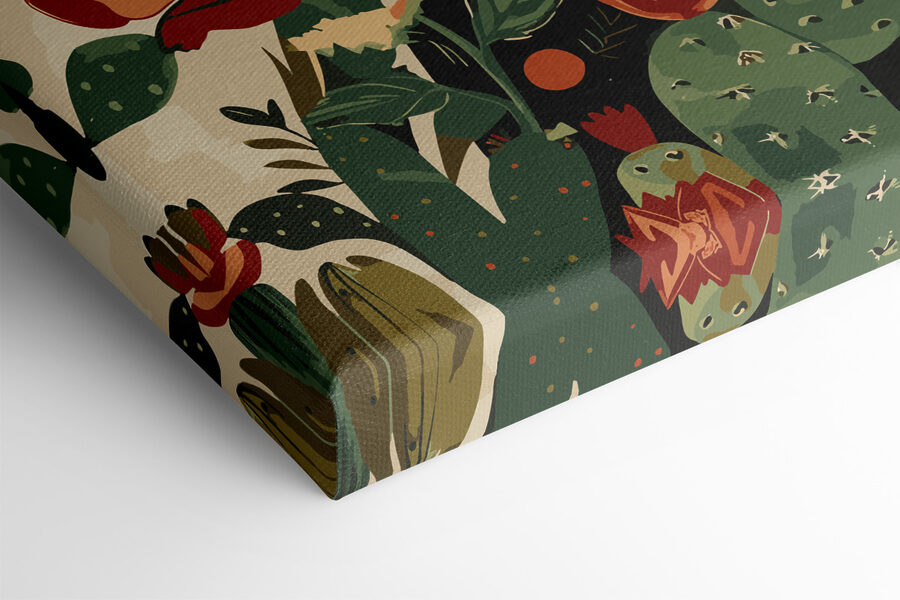 Haben Sie schon einmal Kunst gesehen, die Sie einfach mitreißt? Das ist genau das, was “Floral Vibes Among Prickly Cacti” tut. Dieser Leinwanddruck bietet eine einzigartige Mischung aus kühnen Kakteen und leuchtenden Blumen, die sich um eine markante Figur ranken. Stellen Sie sich das Bild in Ihrem Wohnzimmer vor – jedes Mal, wenn Sie einen Blick darauf werfen, ist es wie eine kleine Flucht in eine warme Wüstenoase. Die Mischung der Farben wirkt beruhigend und anregend zugleich, ähnlich wie eine gute Tasse Kaffee. Perfekt, um einen Hauch von Natur und Kunstfertigkeit zu vermitteln, ohne dass man einen grünen Daumen braucht. Hängen Sie es auf, und lassen Sie es für sich selbst sprechen. Es ist verspielt, es ist schön – es ist ein Gesprächsanlass. Ihre Freunde werden Sie bestimmt danach fragen!