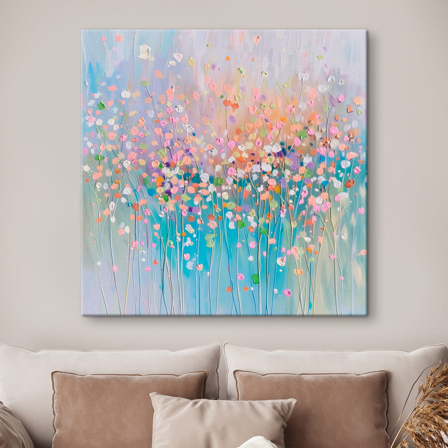 Dieser fröhliche Leinwanddruck mit tanzenden Blumen vor einem beruhigenden blauen Hintergrund bringt frischen Wind in jeden Raum. Es ist wie ein Hauch von frischer Frühlingsluft, voller fröhlicher Farben, die den Raum sofort lebendig wirken lassen. Stellen Sie sich vor, Sie sitzen am Fenster und schlürfen Ihren Morgenkaffee, während dieses lebendige Kunstwerk sanfte Geschichten von blühenden Gärten flüstert. Perfekt für ein Wohnzimmer oder eine gemütliche Ecke, bringt es einen Hauch von Natur ohne Gießkanne. Die verspielten Pinselstriche laden dazu ein, sich in einem blühenden Tagtraum zu verlieren und erinnern jeden daran, dass Schönheit oft nur einen Blick entfernt ist.