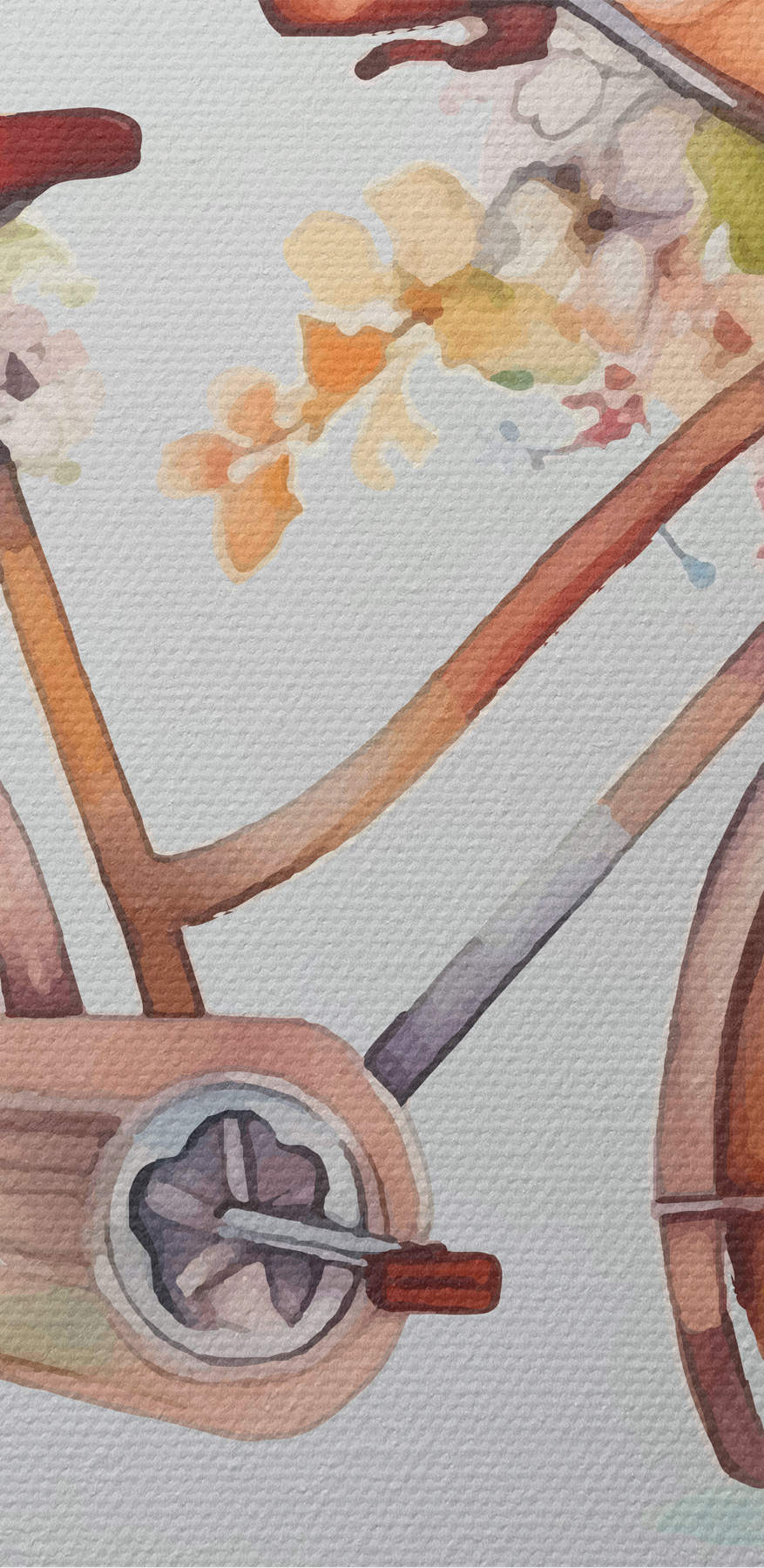 Stellen Sie sich vor, Sie kommen nach einem langen Tag nach Hause, öffnen Ihre Tür und werden von dieser entzückenden Szene begrüßt – ein Fahrrad, das mit den lebhaftesten, lebendigsten Blumen geschmückt ist, die Sie je gesehen haben. Dieser Leinwanddruck ist wie ein sanftes Flüstern von Sommermorgen und sorglosen Fahrradtouren durch blühende Felder. Es ist die perfekte Mischung aus Kunst und Natur und bringt einen Hauch von Freude und Farbe in jeden Raum. Ein Bild wie dieses hängt nicht nur an der Wand – es lebt dort und regt zum Lächeln und zu süßen Tagträumen an. Und der Aquarellstil? Er hat diese weiche, verträumte Ausstrahlung, die fast magisch wirkt. Ob im Wohnzimmer, im Schlafzimmer oder sogar in einer gemütlichen Leseecke, dieses Bild ist ein Fest der Schönheit und Ruhe. Eine sanfte Erinnerung daran, langsamer zu werden, durchzuatmen und die einfachen Freuden des Lebens zu genießen.