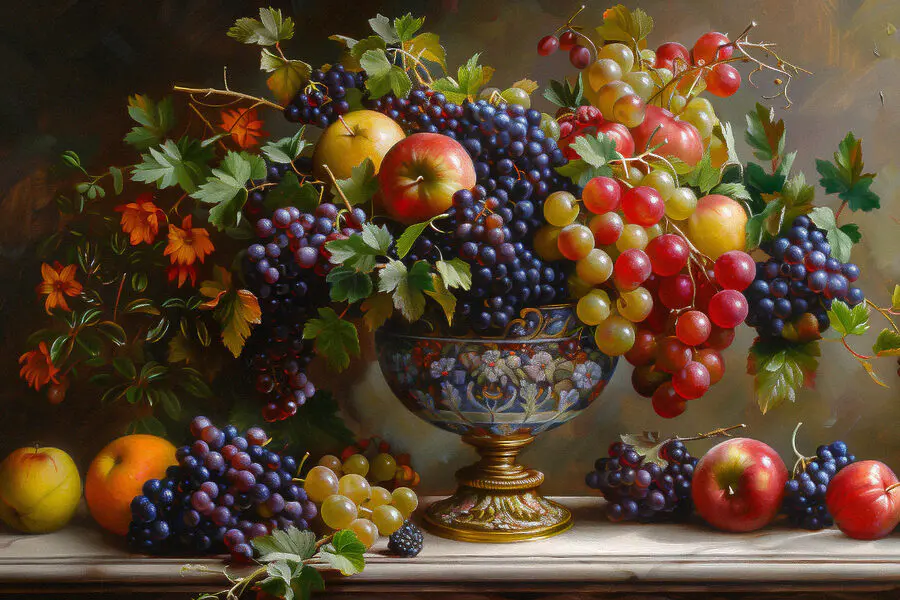 Stellen Sie sich eine leuchtende Schale mit köstlichen Früchten vor, die darauf wartet, jeden Raum zu erhellen. Dieser Leinwanddruck ist nicht nur ein echter Hingucker, sondern auch eine fröhliche Einladung, die kleinen Freuden des Lebens zu genießen. Die Farben tanzen zusammen wie ein perfekt gemixter Smoothie und erinnern an gemütliche Küchen und sonnige Nachmittage. Stellen Sie es sich in Ihrem Esszimmer vor, wo es zu köstlichen Gesprächen anregt oder vielleicht zu dem Obstsalat inspiriert, den Sie aufgeschoben haben. Es ist ein Hauch von Kunst, der Räume warm und einladend wirken lässt, perfekt für alle, die einen Hauch des guten Lebens lieben.
