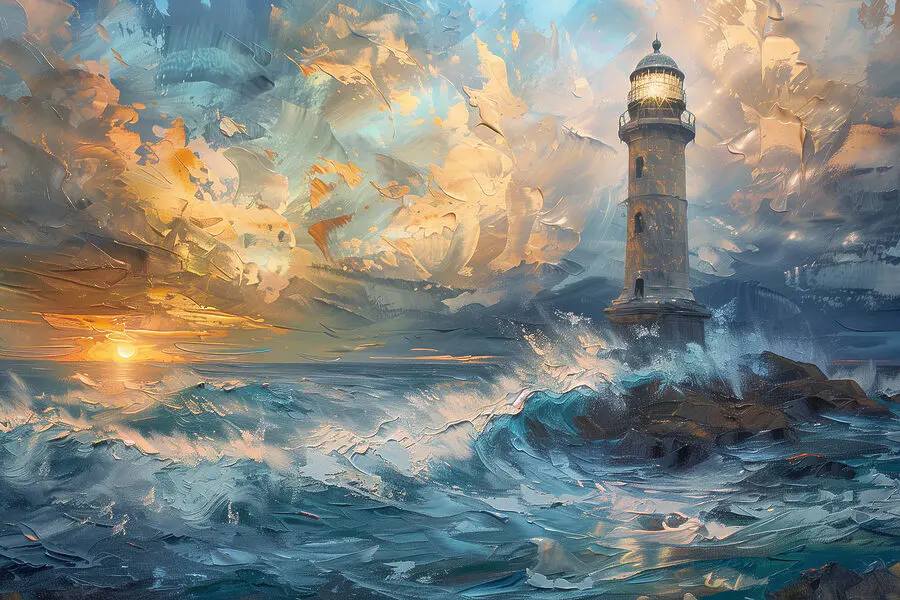 Stellen Sie sich vor: Sie sitzen in einer gemütlichen Ecke Ihres Zimmers, und genau dort erhebt sich ein faszinierender Leuchtturm inmitten der aufgewühlten Meereswellen. Dieser Leinwanddruck mit dem treffenden Namen “Wandbilder Lighthouse in the Ocean” (Leuchtturm im Ozean) bringt die Essenz des maritimen Abenteuers direkt in Ihren Wohnbereich. Die Farben tanzen wie ein Sonnenuntergang, während die sanften Wellen die Geheimnisse des Meeres zu flüstern scheinen. Es ist, als hätte man ein Fenster zu einem fernen Strand. Die Gäste werden die salzige Brise spüren und vielleicht sogar ein wenig Fernweh verspüren – wer weiß, vielleicht werden sie ja inspiriert, ihre eigene Flucht ans Meer zu planen. Perfekt für alle, die sich nach einem Stückchen Natur sehnen, bringt es Wärme und einen Hauch von Gelassenheit an jede Wand. Stellen Sie sich die Gespräche vor, die es auslösen wird – definitiv eine gute Wahl für Liebhaber von Meeresgeschichten und verträumter Dekoration!