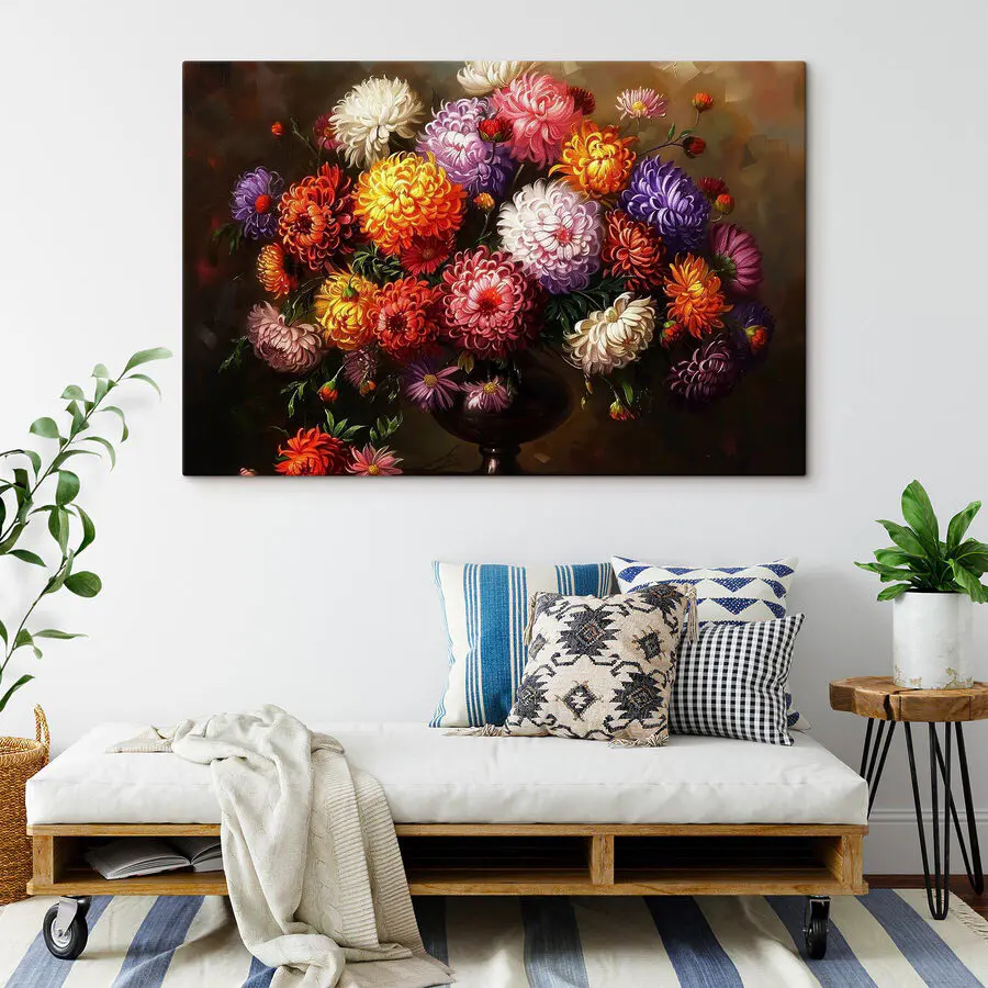Verschönern Sie jeden Raum mit diesem atemberaubenden Leinwanddruck von Blumen in einer Vase. Es ist, als würde man sich einen kleinen Garten ins Haus holen – ohne Gießkanne und lästige Käfer! Die leuchtenden Farben heben sich von einem dezenten Hintergrund ab und machen es zu einem perfekten Gesprächsanlass für gemütliche Abende mit Freunden. Stellen Sie sich vor, Sie schlürfen einen Tee, umgeben von dieser Blumenexplosion. Das ist nicht nur Dekoration, das ist ein Erlebnis. Und wer würde nicht jedes Mal, wenn er sie ansieht, einen Ausbruch von Freude verspüren? Perfekt, um Wohnzimmern, Büros oder sogar Fluren einen süßen Touch zu geben. Lassen Sie dieses Kunstwerk zu Ihrem fröhlichen Begleiter werden!