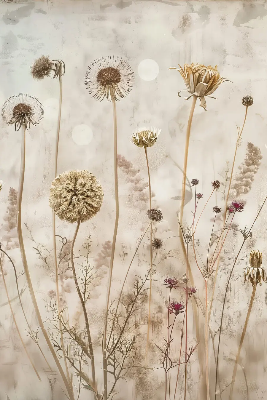 Holen Sie sich mit diesem Leinwandbild mit getrockneten Wildblumen einen Hauch von ländlicher Gelassenheit in Ihr Zuhause. Stellen Sie sich vor, Sie spazieren über eine friedliche Wiese – diese ruhigen, stillen Momente, in denen die Zeit einfach stehen bleibt. Dieses Kunstwerk fängt diese Stimmung perfekt ein.