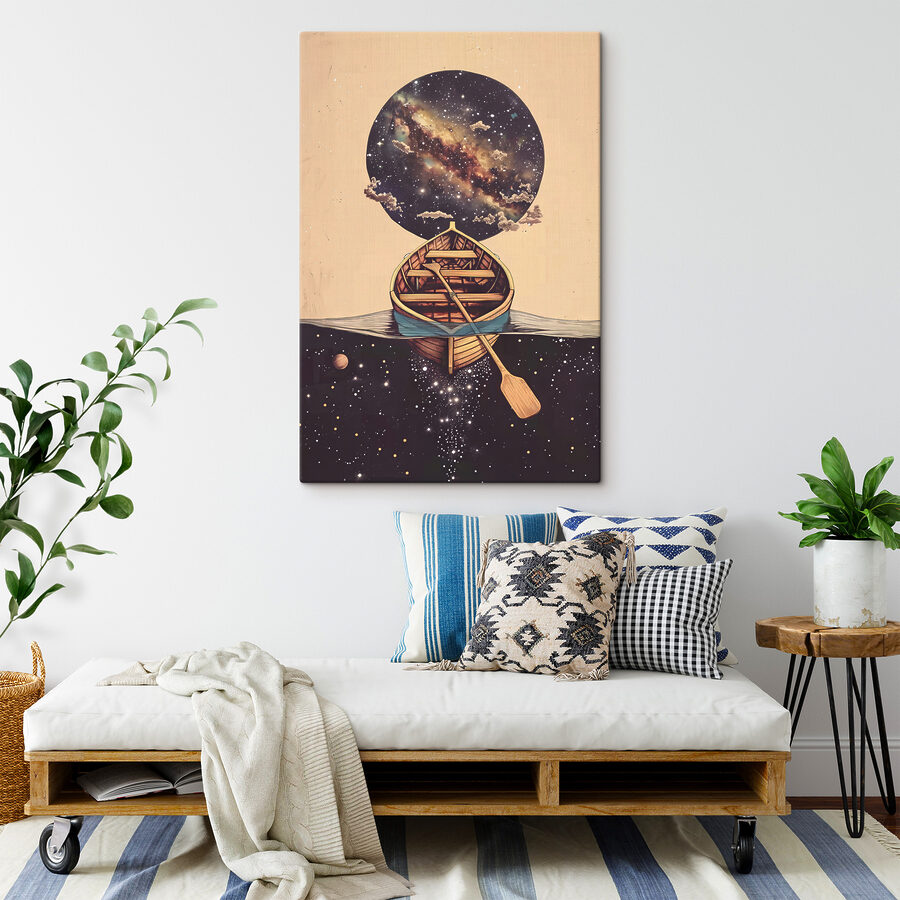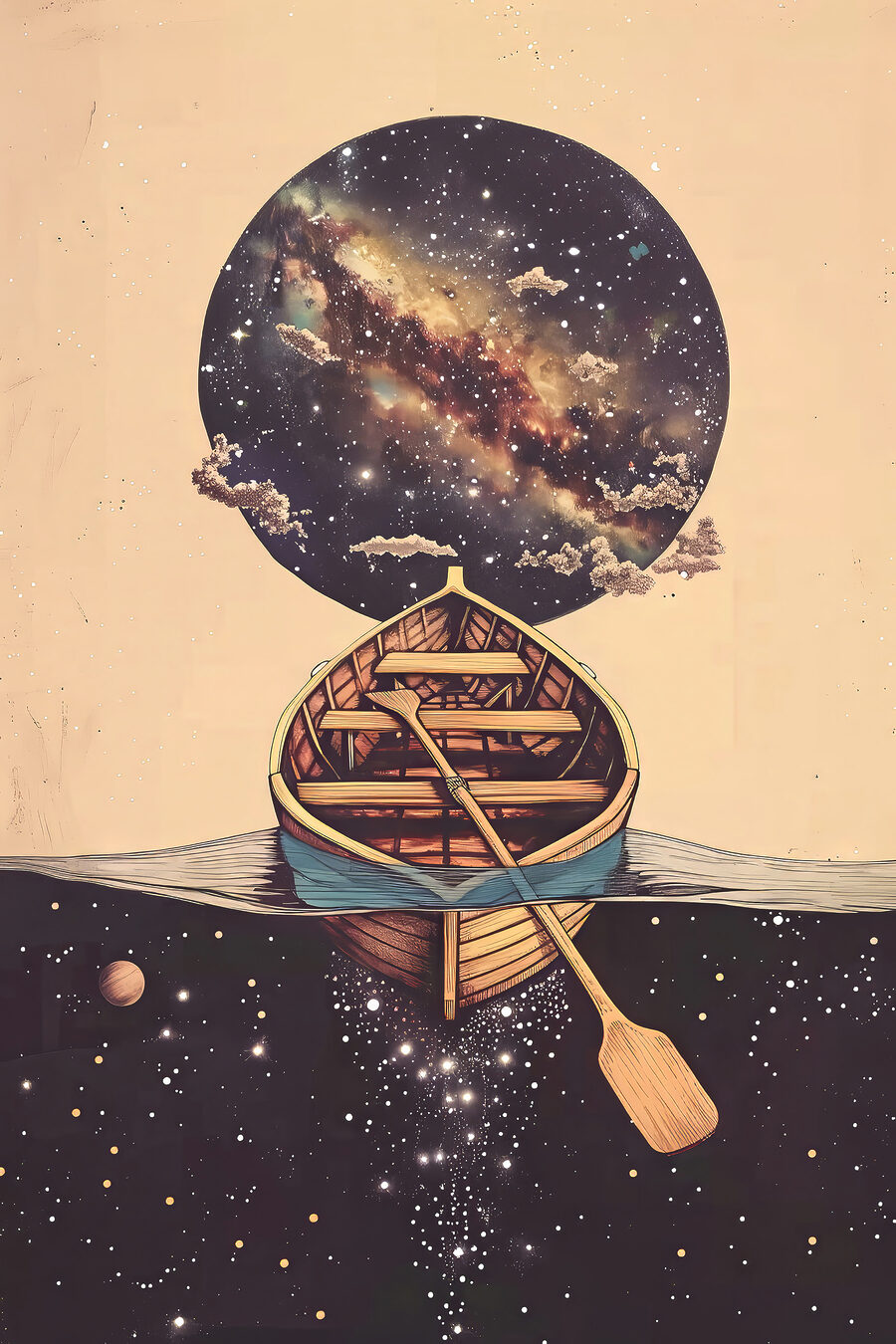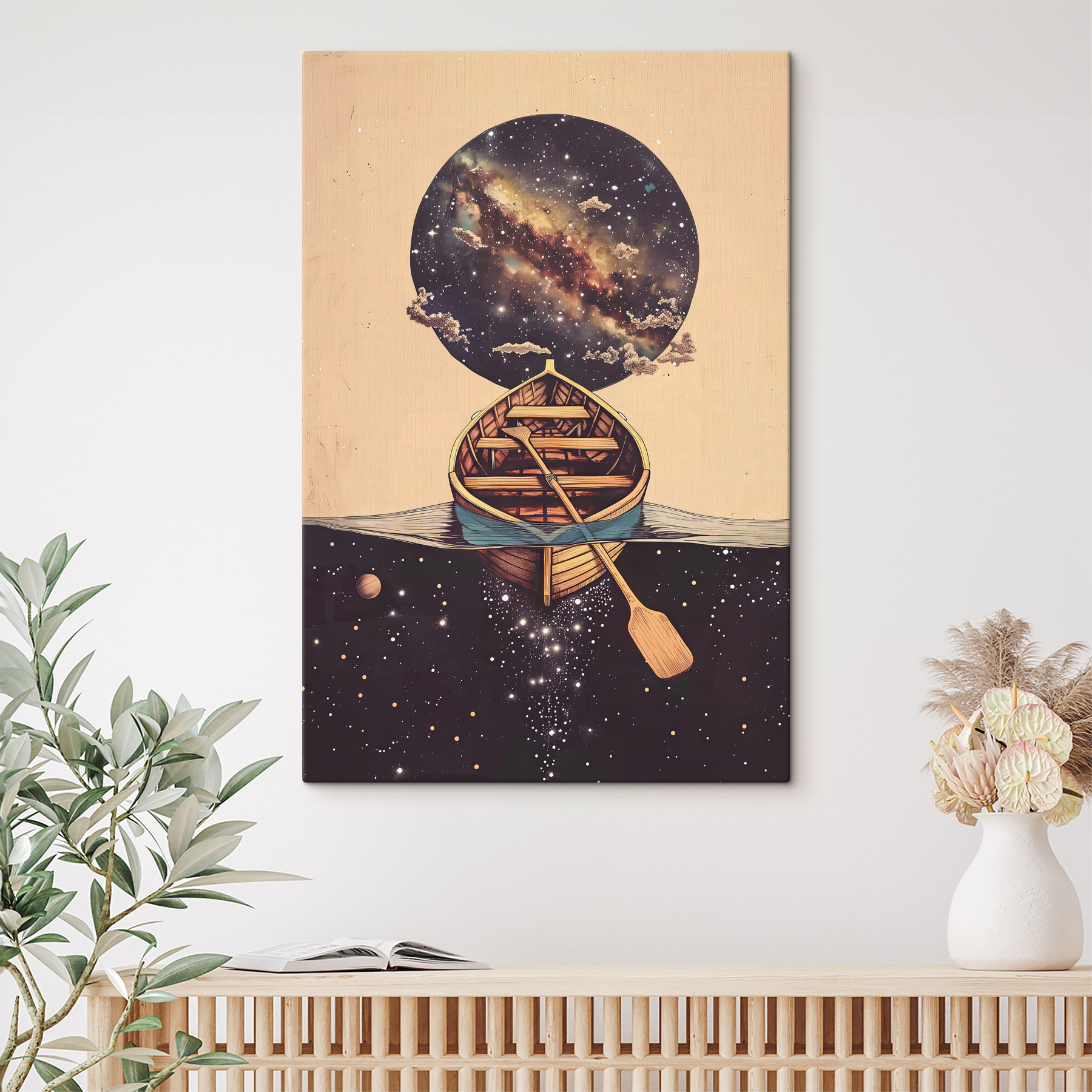 “Zeichnung eines Bootes mit Paddel” – eine bezaubernde Mischung aus irdischem Charme und kosmischer Magie. Diese Leinwand flüstert Geschichten von verträumten Nächten auf dem Wasser, mit einem Hauch von Sternenstaub. Stellen Sie sich ein gemütliches Boot vor, das auf einem gesprenkelten Meer unter einer wirbelnden Galaxie treibt. Ideal für jeden Raum, der einen Hauch von Wunder braucht. Stellen Sie sich vor, wie sich eine leere Wand verwandelt – heiter und doch wie aus einer anderen Welt. Es ist eine sanfte Erinnerung an das Abenteuer, ohne dass Sie Ihr Haus verlassen müssen. Perfekt, um Gespräche anzuregen oder einfach nur zu träumen. Tauchen Sie in das Unbekannte ein, direkt von Ihrer Couch aus!
