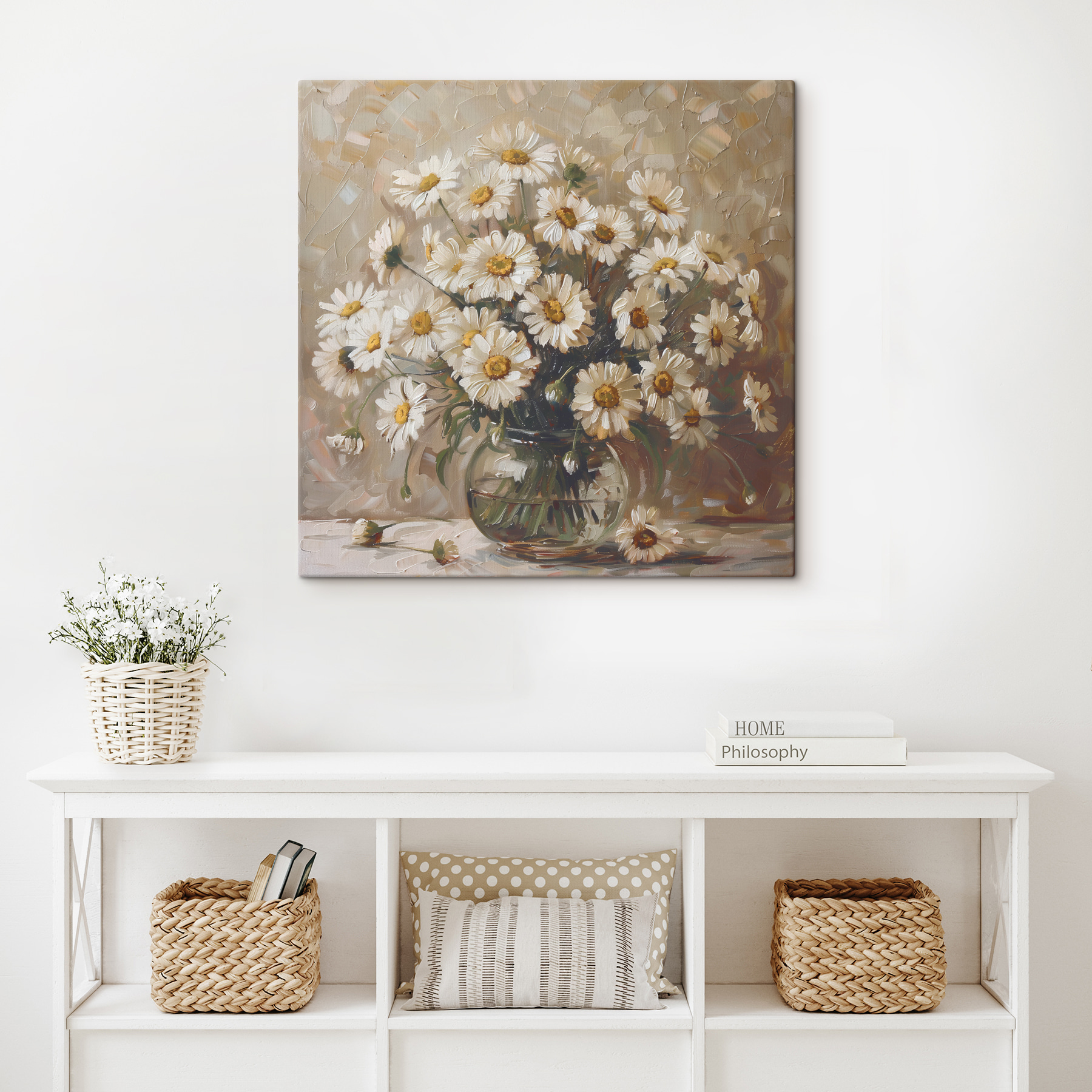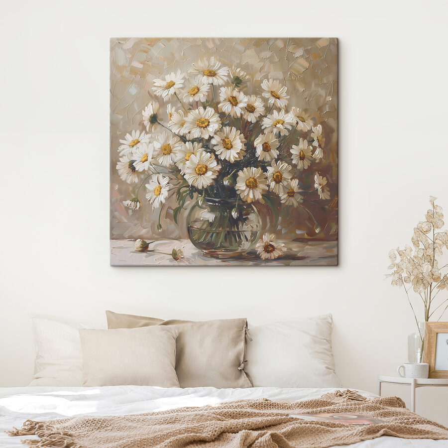 Verschönern Sie jeden Raum mit diesem charmanten Leinwanddruck, der einen herrlichen Strauß Gänseblümchen in einer Glasvase zeigt. Stellen Sie sich vor, Sie betreten einen Raum, in dem diese fröhlichen Blumen sofort Freude verbreiten, sobald Sie sie sehen. Es ist, als hätten Sie ein kleines Stück Natur zu Hause, das Ihnen Wärme und Frische zuflüstert. Dieses Kunstwerk eignet sich perfekt, um eine gemütliche Leseecke oder eine sonnige Küche zu beleben und lädt zum Lächeln und Träumen ein. Außerdem haben Gänseblümchen etwas Besonderes an sich – sie erinnern irgendwie an sonnige Tage und unbeschwerte Momente, nicht wahr? Ob als Geschenk oder für sich selbst, dieses Kunstwerk wird alle Herzen erobern.