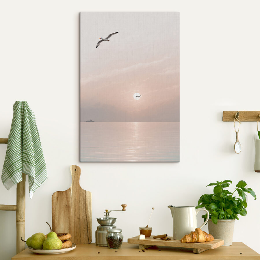 Stellen Sie sich diesen atemberaubenden Leinwanddruck an einer Wand vor: eine Möwe, die mühelos über das ruhige Wasser gleitet, als ob sie sich um nichts in der Welt kümmern müsste! Die sanften Farbtöne des Sonnenuntergangs schaffen eine verträumte Kulisse, die jeden Raum in eine friedliche Stimmung versetzt. Perfekt für die Tage, an denen der Gedanke an einen Strandurlaub wie ein ferner Traum erscheint, verwandelt dieses Stück jeden Raum in eine heitere Flucht. Es ist, als hätte man ein Fenster zum Meer ohne die salzige Luft… obwohl eine schöne Meeresbrise nicht schaden würde, oder? Lassen Sie dieses Kunstwerk Tagträume und vielleicht sogar ein wenig Fernweh wecken!