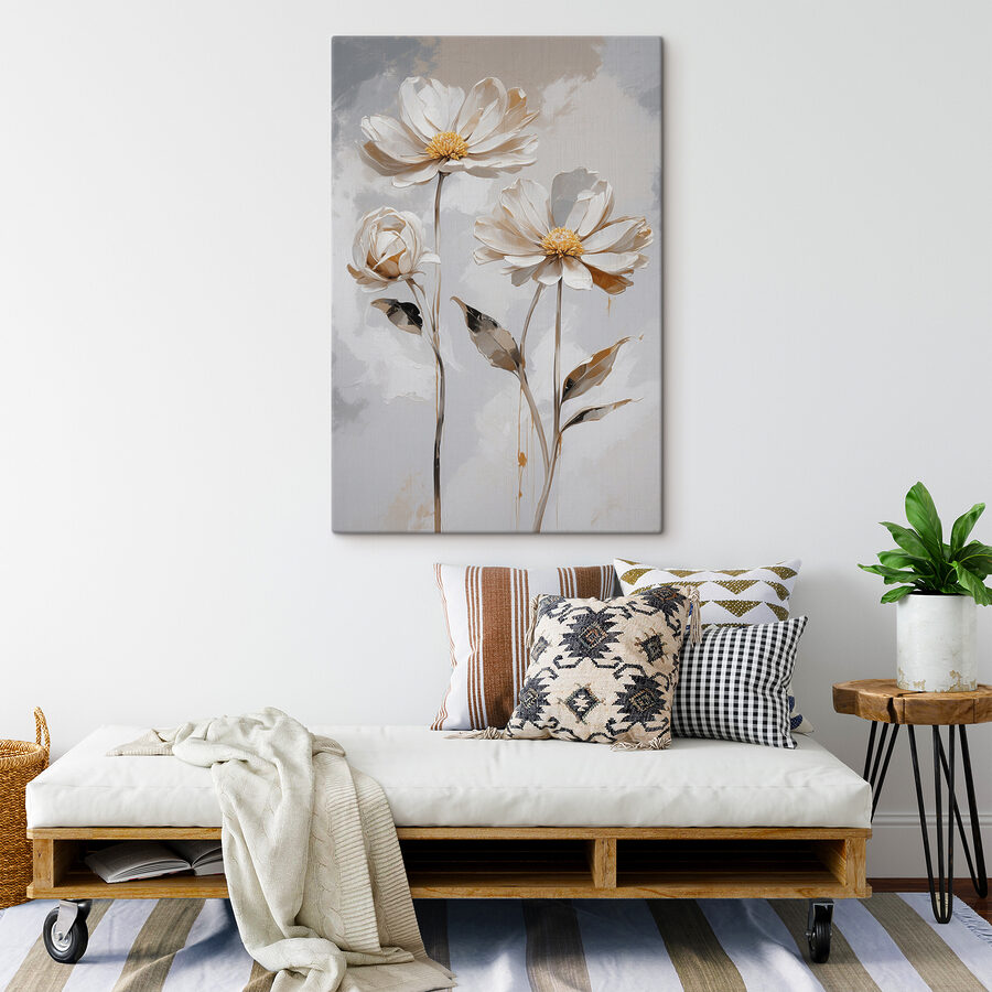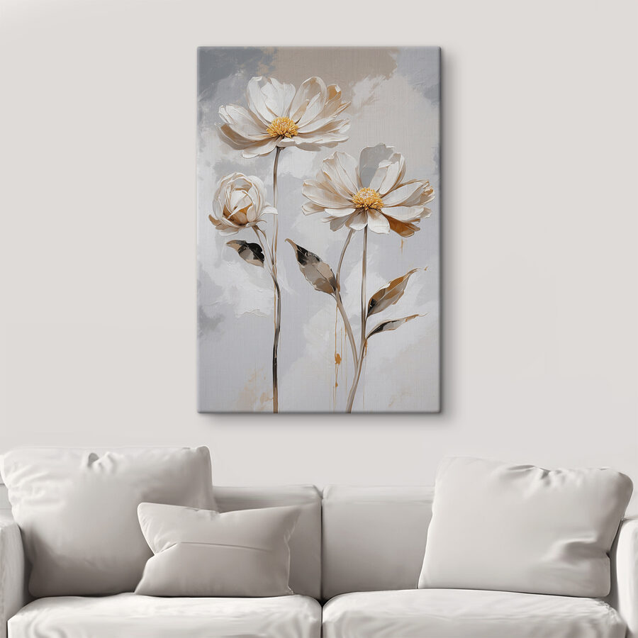 Sind Sie jemals in einen Raum gegangen und haben sich einfach… ruhig gefühlt? Als könnten Sie ein wenig leichter atmen? Genau das tut dieser Leinwanddruck – er verbreitet eine sanfte, friedliche Stimmung, die genau richtig ist. Die zarten, fast verträumten Blumen scheinen auf der Leinwand zu schweben, als ob sie kleine Geheimnisse der Natur flüstern würden. Perfekt für alle Orte, an denen man sich einen Hauch von Natur ins Haus holen möchte. Ob über einer gemütlichen Couch oder im Flur, dieses Stück verleiht einen Hauch von Eleganz, ohne spießig zu wirken. Und wer liebt sie nicht, die perfekte Mischung aus neutralen Tönen, die zu so ziemlich allem passen? Es ist wie eine Umarmung für deine Wände 🌸.