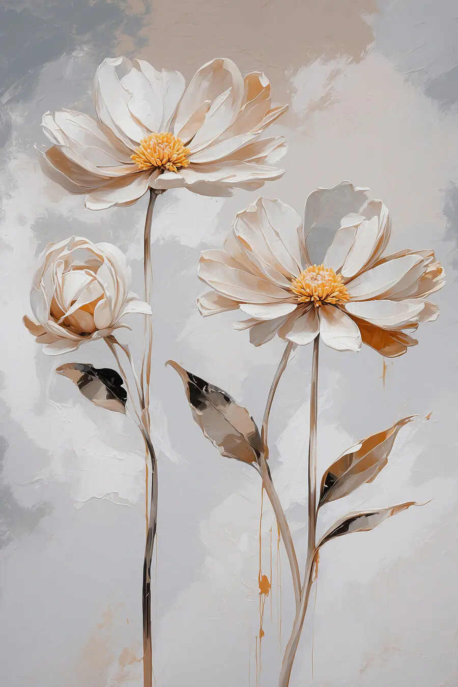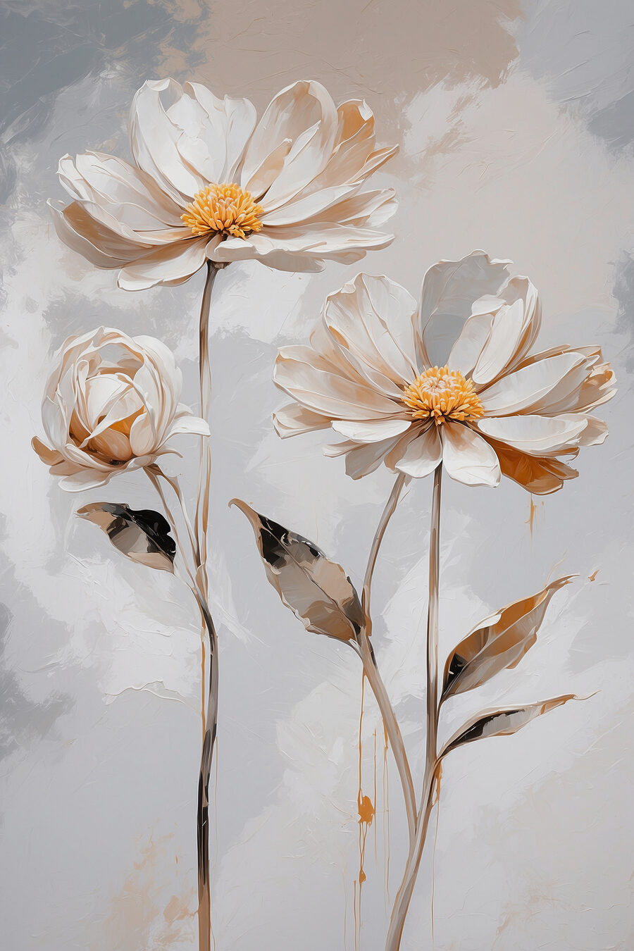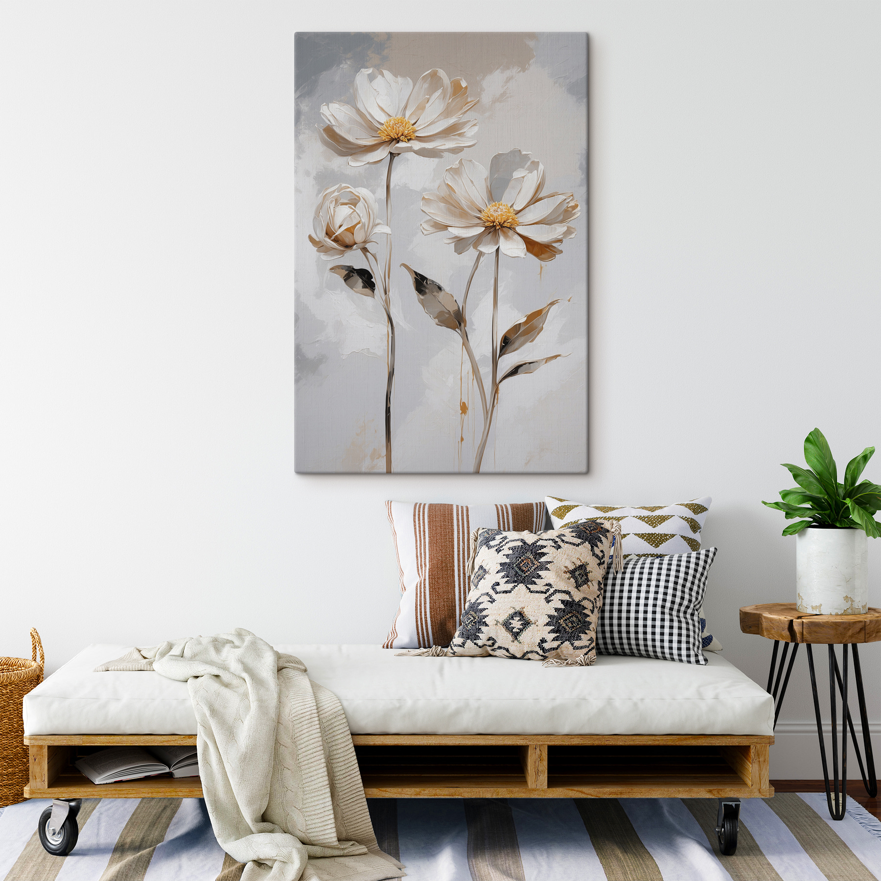 Sind Sie jemals in einen Raum gegangen und haben sich einfach… ruhig gefühlt? Als könnten Sie ein wenig leichter atmen? Genau das tut dieser Leinwanddruck – er verbreitet eine sanfte, friedliche Stimmung, die genau richtig ist. Die zarten, fast verträumten Blumen scheinen auf der Leinwand zu schweben, als ob sie kleine Geheimnisse der Natur flüstern würden. Perfekt für alle Orte, an denen man sich einen Hauch von Natur ins Haus holen möchte. Ob über einer gemütlichen Couch oder im Flur, dieses Stück verleiht einen Hauch von Eleganz, ohne spießig zu wirken. Und wer liebt sie nicht, die perfekte Mischung aus neutralen Tönen, die zu so ziemlich allem passen? Es ist wie eine Umarmung für deine Wände 🌸.