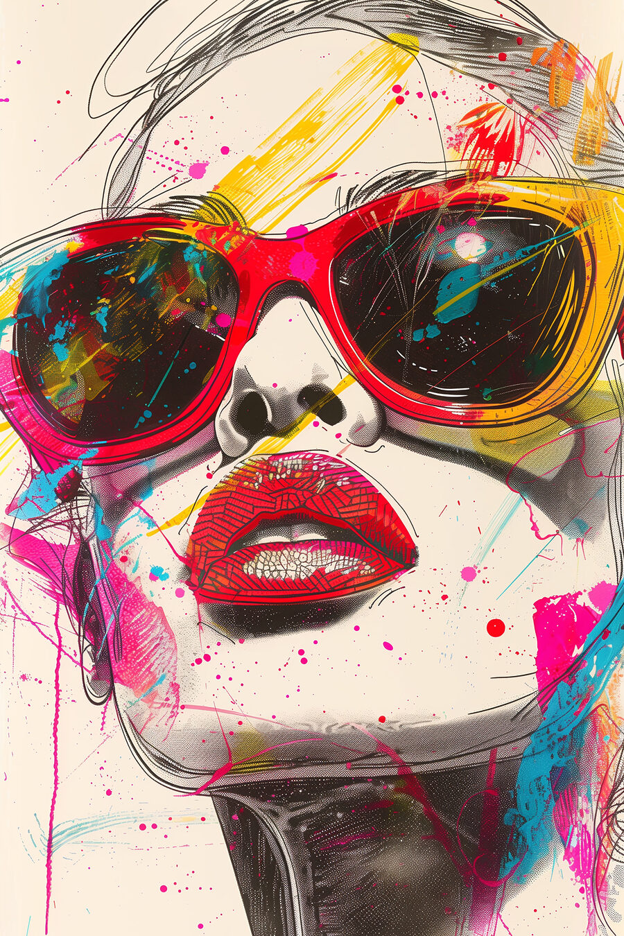 Erhellen Sie jeden Raum mit diesem fesselnden Leinwanddruck, der eine Frau mit auffälliger Sonnenbrille und markanten Lippen zeigt. Die leuchtenden Farben spritzen über die Leinwand und erzeugen einen kleinen Energieschub, der sofort die Stimmung hebt. Stellen Sie sich dieses Bild in einem gemütlichen Wohnzimmer oder einem stilvollen Café vor – es ist wie eine warme Umarmung für den Raum! Perfekt für alle, die einzigartige Dekoration lieben, lädt es zu Gesprächen und Komplimenten ein und macht Freude. Mit all seiner Persönlichkeit bringt es selbst die einfachste Wand zum Singen. Perfekt, um überall einen Hauch von Spaß zu verbreiten, wo immer er auftaucht!
