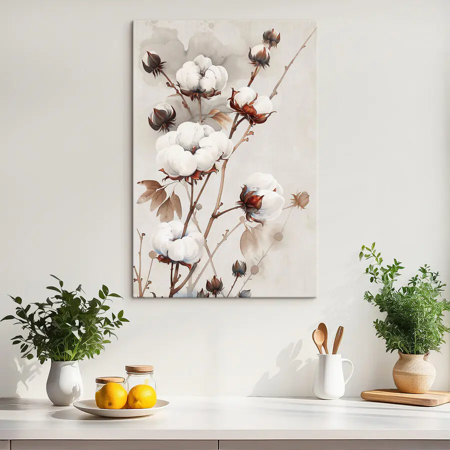 Sehen Sie sich die Leinwandbilder s39215 an – ein sanfter Spritzer Aquarellkunst, der frischen Wind in Ihren Raum bringt! Die weichen, flauschigen weißen Blumen im Kontrast zu den erdigen Braun- und zarten Grüntönen strahlen Ruhe und Wärme aus. Stellen Sie sich dieses Bild in Ihrem Wohn- oder Schlafzimmer vor und bringen Sie einen Hauch von heiterer Natur in Ihren Alltag. Es ist wie ein Spaziergang durch einen friedlichen Garten – ohne tatsächlich durch einen zu gehen!