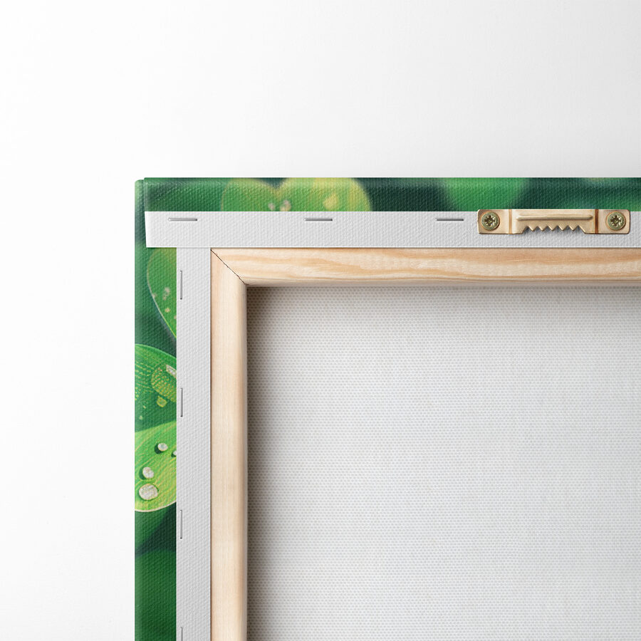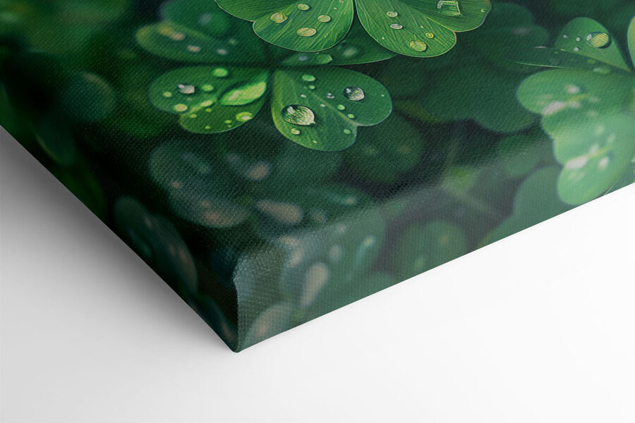 Verwandeln Sie jede Wand in einen ruhigen Zufluchtsort mit diesem bezaubernden Leinwanddruck, der eine lebhafte Gruppe von Kleeblättern zeigt, von denen jedes mit winzigen Tröpfchen verziert ist, die die Essenz der Natur einfangen. Stellen Sie sich das Bild in einer gemütlichen Nische vor – fast so, als ob Sie sich ein Stück Natur ins Haus holen würden. Die satten Grüntöne und die funkelnden Tröpfchen verbreiten eine frische Atmosphäre und geben Ihnen das Gefühl, an einem Frühlingsmorgen über eine taufrische Wiese zu schlendern. Dieses Kunstwerk ist perfekt für alle, die einen Hauch von natürlichem Charme lieben. Es strahlt Einfachheit und Verjüngung aus und lädt zu einem sanften Lächeln und friedlichen Momenten im täglichen Leben ein. Wer wünscht sich nicht jeden Tag einen Hauch von Natur?