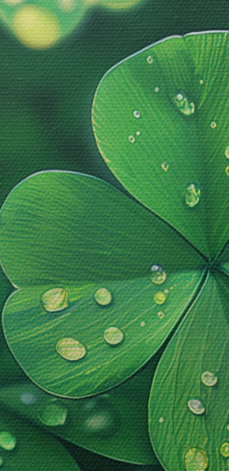 Verwandeln Sie jede Wand in einen ruhigen Zufluchtsort mit diesem bezaubernden Leinwanddruck, der eine lebhafte Gruppe von Kleeblättern zeigt, von denen jedes mit winzigen Tröpfchen verziert ist, die die Essenz der Natur einfangen. Stellen Sie sich das Bild in einer gemütlichen Nische vor – fast so, als ob Sie sich ein Stück Natur ins Haus holen würden. Die satten Grüntöne und die funkelnden Tröpfchen verbreiten eine frische Atmosphäre und geben Ihnen das Gefühl, an einem Frühlingsmorgen über eine taufrische Wiese zu schlendern. Dieses Kunstwerk ist perfekt für alle, die einen Hauch von natürlichem Charme lieben. Es strahlt Einfachheit und Verjüngung aus und lädt zu einem sanften Lächeln und friedlichen Momenten im täglichen Leben ein. Wer wünscht sich nicht jeden Tag einen Hauch von Natur?