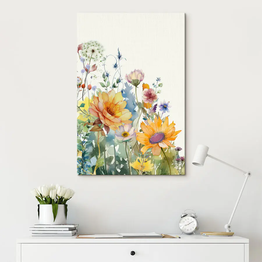 Sehen Sie sich das Bild “Wandbilder s39340” an – ein bezaubernder Ausbruch der Natur für Ihre Wand! Dieses Bild verbindet den Charme der Kunst mit der frischen Schönheit von Aquarellblumen. Stellen Sie sich vor, Sie spazieren durch ein sonnenbeschienenes Feld, während eine sanfte Brise die Samen des Löwenzahns in die Luft schickt… ein Gefühl, das sich direkt in Ihrem Wohnzimmer einstellt. Stellen Sie es sich vor: leuchtende Blütenblätter in sanften Orange-, Lila- und Gelbtönen… sie leuchten geradezu! Perfekt, um einen Hauch von Heiterkeit und Freude zu verbreiten. Ob im Wohnzimmer, im Schlafzimmer oder sogar in einer gemütlichen Leseecke, dieser Druck bringt Leben und Farbe in jeden Raum. Es ist, als hätte man das ganze Jahr über einen Hauch von Frühling im Haus!