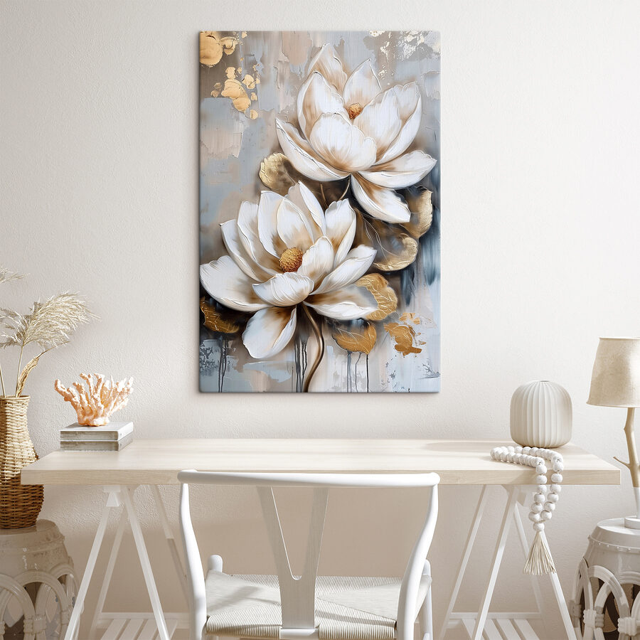 Verschönern Sie Ihren Raum mit diesem atemberaubenden Leinwanddruck von Blumen auf einem weichen grauen Hintergrund. Stellen Sie sich vor, Sie betreten Ihren Raum und werden von diesen üppigen Blüten begrüßt, deren sanfte Farbtöne sofort einen Hauch von Wärme und Fröhlichkeit verbreiten. Dieses Kunstwerk ist perfekt für Momente, in denen sich der Tag ein wenig zu ernst anfühlt. Es strahlt Eleganz aus und wirkt dennoch einladend – wie ein gemütliches Gespräch mit einem alten Freund. Hängen Sie es in ein Wohnzimmer, ein Schlafzimmer oder sogar einen Flur und beobachten Sie, wie es die Atmosphäre verändert und eine kleine Oase in Ihrem Zuhause schafft. Wer hätte gedacht, dass Kunst so erfrischend sein kann?