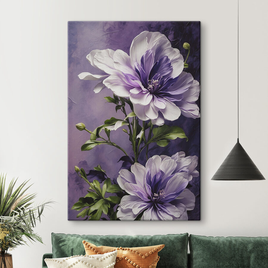 “Leinwanddrucke s39368” – ein wunderschönes Gemisch aus Kunst, leuchtenden Blumen und Aquarellzauber. Stellen Sie sich vor: Sie kommen in Ihr Wohnzimmer, und da ist es… eine Explosion von zarten Lila- und satten Grüntönen – ein wahrer Augenschmaus! Ich wette, es hebt sofort Ihre Stimmung – wie eine Gartenparty direkt an Ihrer Wand. Jedes Blütenblatt sieht fast zum Anfassen aus und lädt zu Bewunderung und Tagträumen ein. Ob Sie nun Ihren Morgenkaffee trinken oder sich nach einem langen Tag entspannen, dieses Bild erweckt eine blumige Fantasie zum Leben! Es sieht aus, als hätte Mutter Natur selbst ein paar Aquarellpinsel in die Hand genommen. Perfekt für alle, die sich einen Hauch von Natur wünschen – ohne zu gießen. Machen Sie sich bereit für große “Woher hast du das?”-Momente, wenn Freunde zu Besuch kommen!