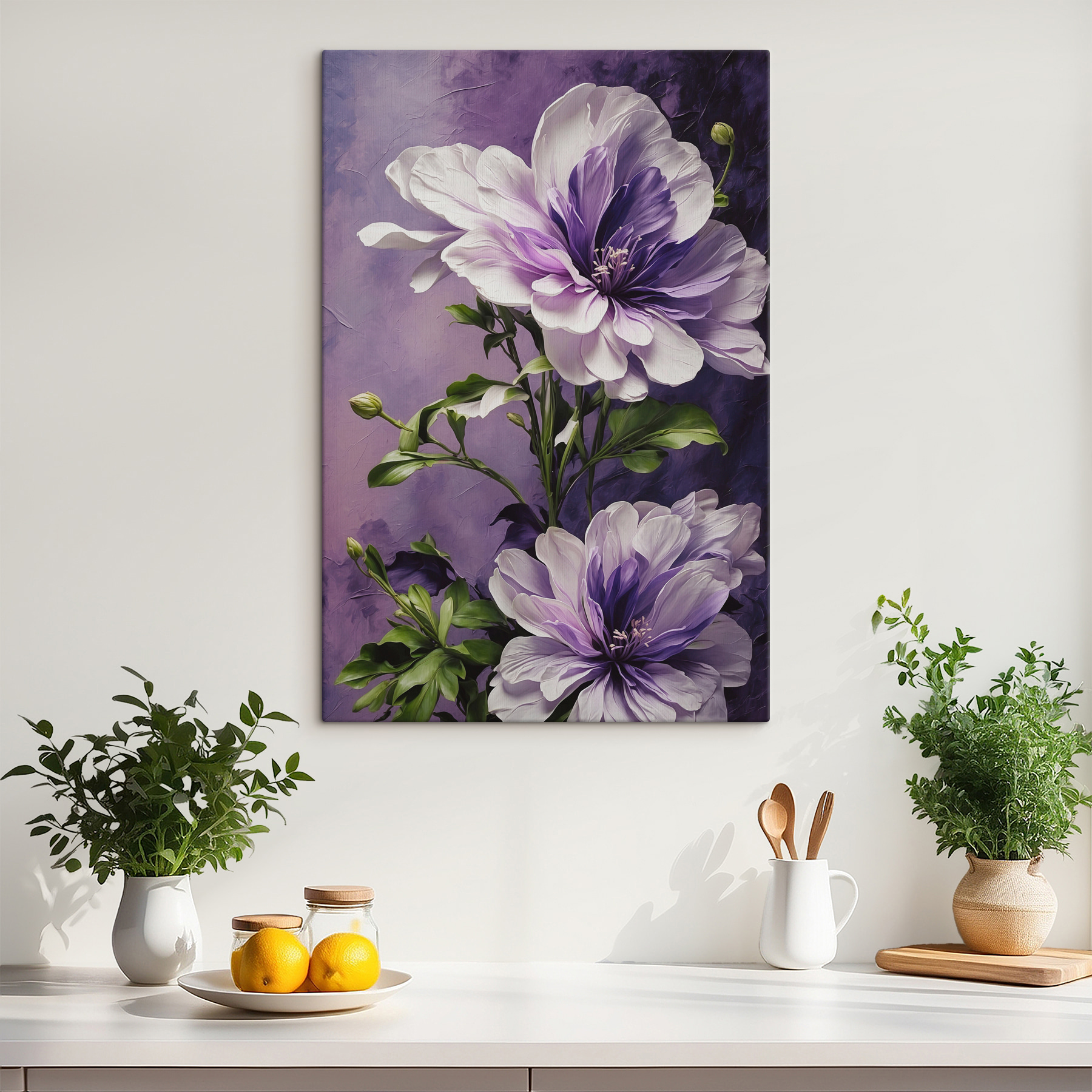 “Leinwanddrucke s39368” – ein wunderschönes Gemisch aus Kunst, leuchtenden Blumen und Aquarellzauber. Stellen Sie sich vor: Sie kommen in Ihr Wohnzimmer, und da ist es… eine Explosion von zarten Lila- und satten Grüntönen – ein wahrer Augenschmaus! Ich wette, es hebt sofort Ihre Stimmung – wie eine Gartenparty direkt an Ihrer Wand. Jedes Blütenblatt sieht fast zum Anfassen aus und lädt zu Bewunderung und Tagträumen ein. Ob Sie nun Ihren Morgenkaffee trinken oder sich nach einem langen Tag entspannen, dieses Bild erweckt eine blumige Fantasie zum Leben! Es sieht aus, als hätte Mutter Natur selbst ein paar Aquarellpinsel in die Hand genommen. Perfekt für alle, die sich einen Hauch von Natur wünschen – ohne zu gießen. Machen Sie sich bereit für große “Woher hast du das?”-Momente, wenn Freunde zu Besuch kommen!