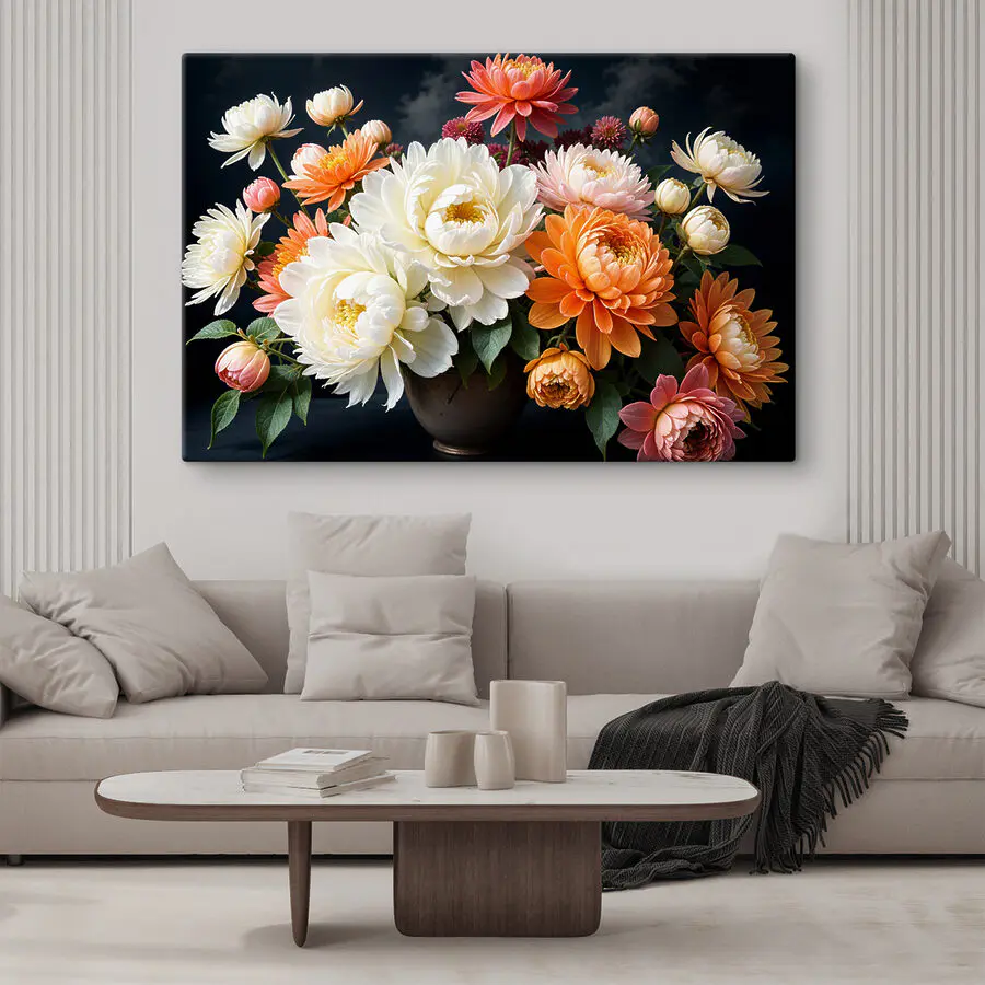 Die Blumen scheinen geradezu von der Leinwand zu tanzen, nicht wahr? Die Blüten sind so detailgetreu eingefangen, dass man sich dabei ertappen könnte, sie täglich zu bewundern. Und das Beste daran? Sie brauchen keinen grünen Daumen, um diese Blumenpracht frisch zu halten. Ganz gleich, ob Sie sich für Kunst, Blumenromantik oder einfach nur für eine stilvolle Dekoration interessieren, dieses Stück erfüllt alle Kriterien. Es ist, als würde man einen Moment reiner, strahlender Schönheit auf Leinwand verewigen.
