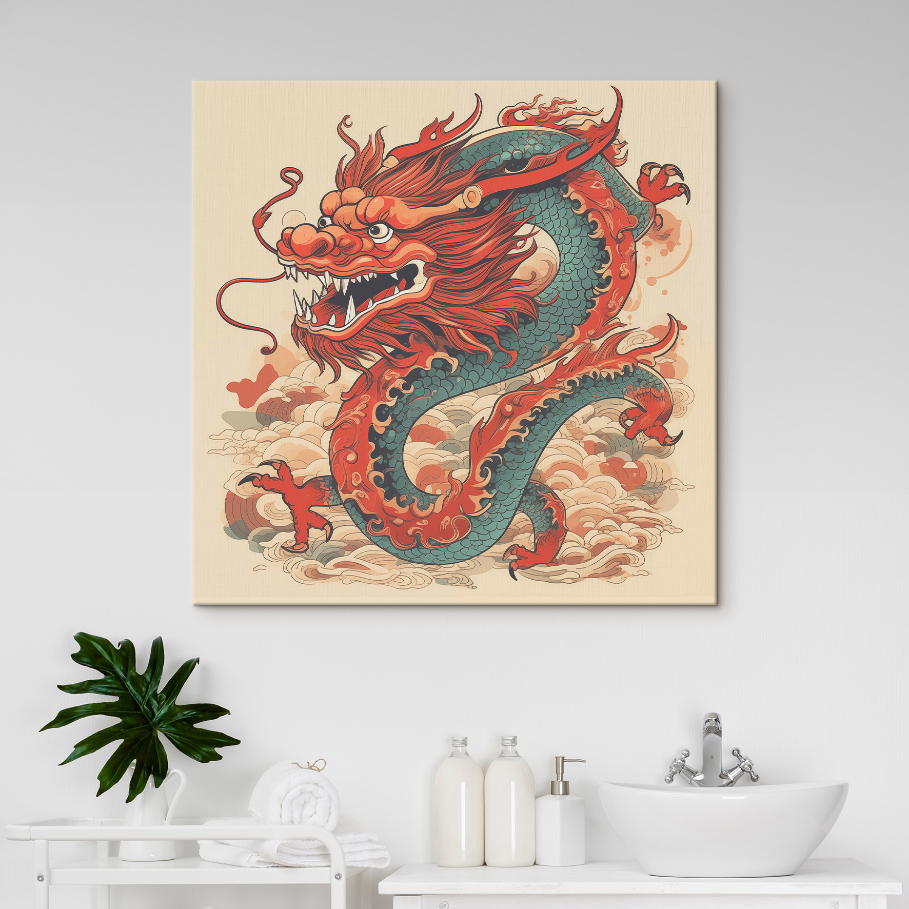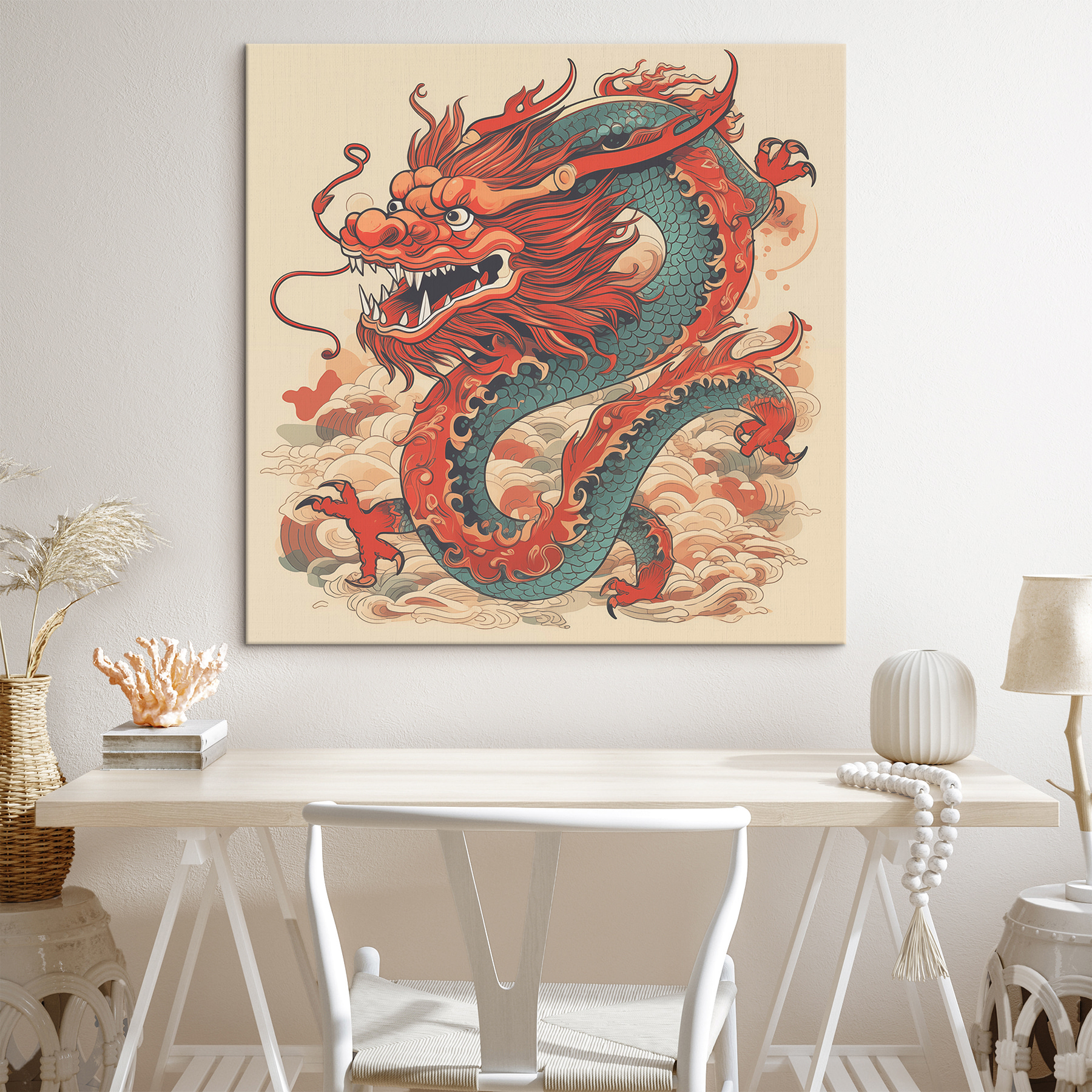 Dieser Leinwanddruck eines Drachens mit langem Schwanz ist ein majestätisches Werk, das Persönlichkeit ausstrahlt! Seine leuchtenden Farben und sein grimmiger Ausdruck werden Ihre Gäste zum Staunen bringen. Stellen Sie sich diese Schönheit in Ihrem Wohnzimmer vor und verwandeln Sie die Atmosphäre mühelos von gewöhnlich in außergewöhnlich. Es ist, als hätten Sie eine mystische Kreatur an der Wand, die zu Gesprächen und vielleicht sogar zu Tagträumen über epische Abenteuer anregt. Und wenn Sie mal eine kleine Inspiration brauchen, dann ist dieser Drache genau das Richtige für Sie. Perfekt für Liebhaber einzigartiger Dekoration, die einen Hauch von Skurrilität und einen Hauch von Kühnheit lieben!