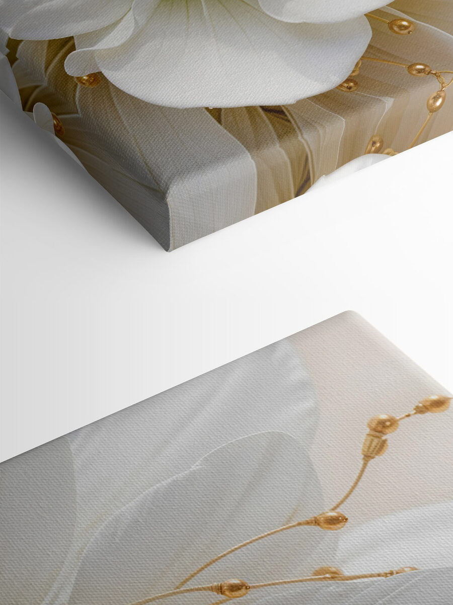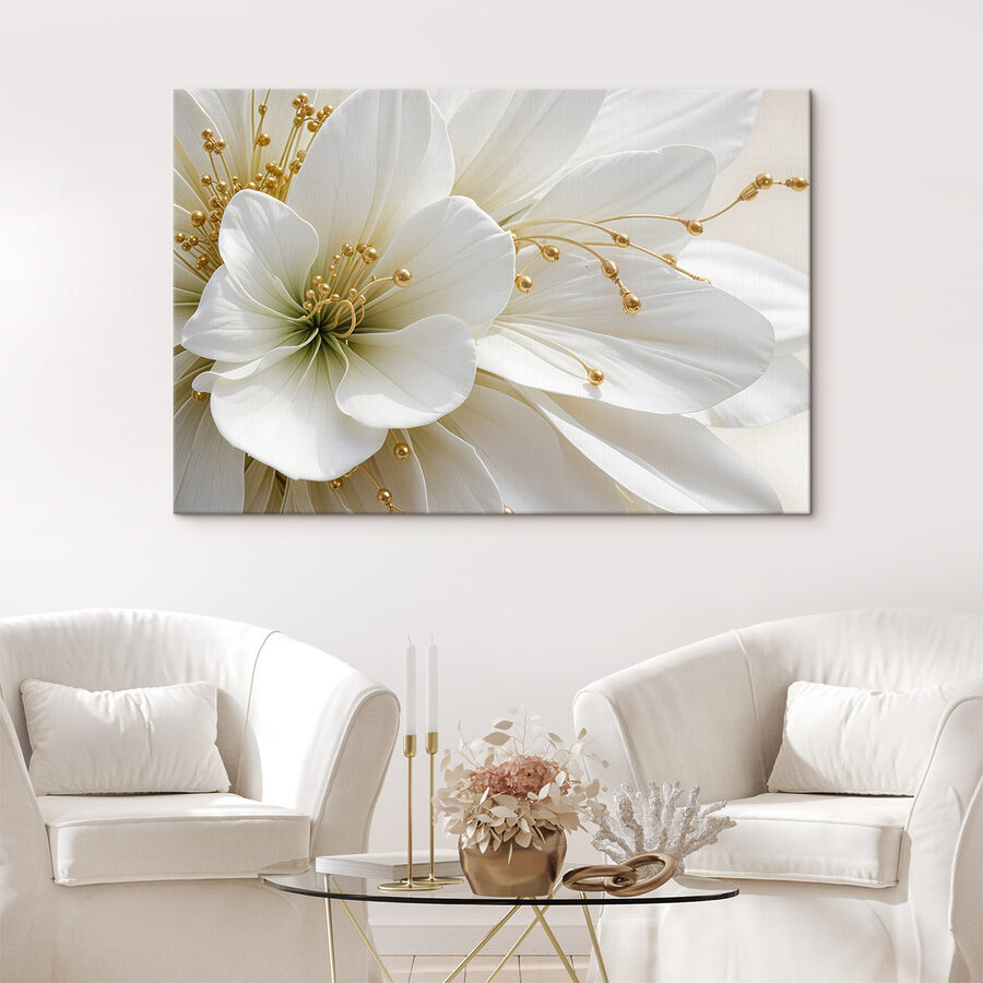 Stellen Sie sich vor, Sie betreten einen Raum, in dem Eleganz auf Natur trifft. Das “Wandbilder Elegance in White and Beads” macht genau das! Dieses atemberaubende Werk zeigt üppige weiße Blütenblätter, die direkt auf der Leinwand zu blühen scheinen und Sie in ihre heitere Schönheit ziehen. Es ist, als hätte man einen kleinen Garten im Haus, nur ohne Gießkanne.