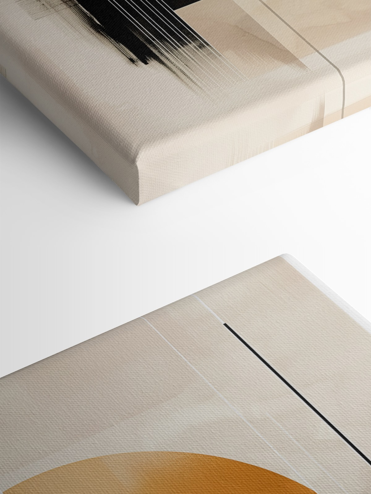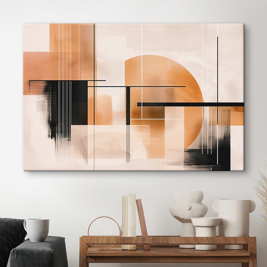 Außerdem spielt die Mischung aus sanftem Beige und leuchtendem Orange wunderbar mit dem natürlichen Licht und schafft so ein sich ständig veränderndes Kunstwerk. In der einen Minute wirkt es ruhig und gelassen, in der nächsten ist es wie ein Ausbruch von Kreativität direkt an Ihrer Wand. Stellen Sie sich vor, Sie machen es sich darunter mit einem guten Buch und einer Tasse Tee gemütlich. Es fühlt sich an wie ein kleines Stück moderner Kunst – perfekt für alle, die ein bisschen abstrakte Schönheit in ihren Alltag bringen wollen.
