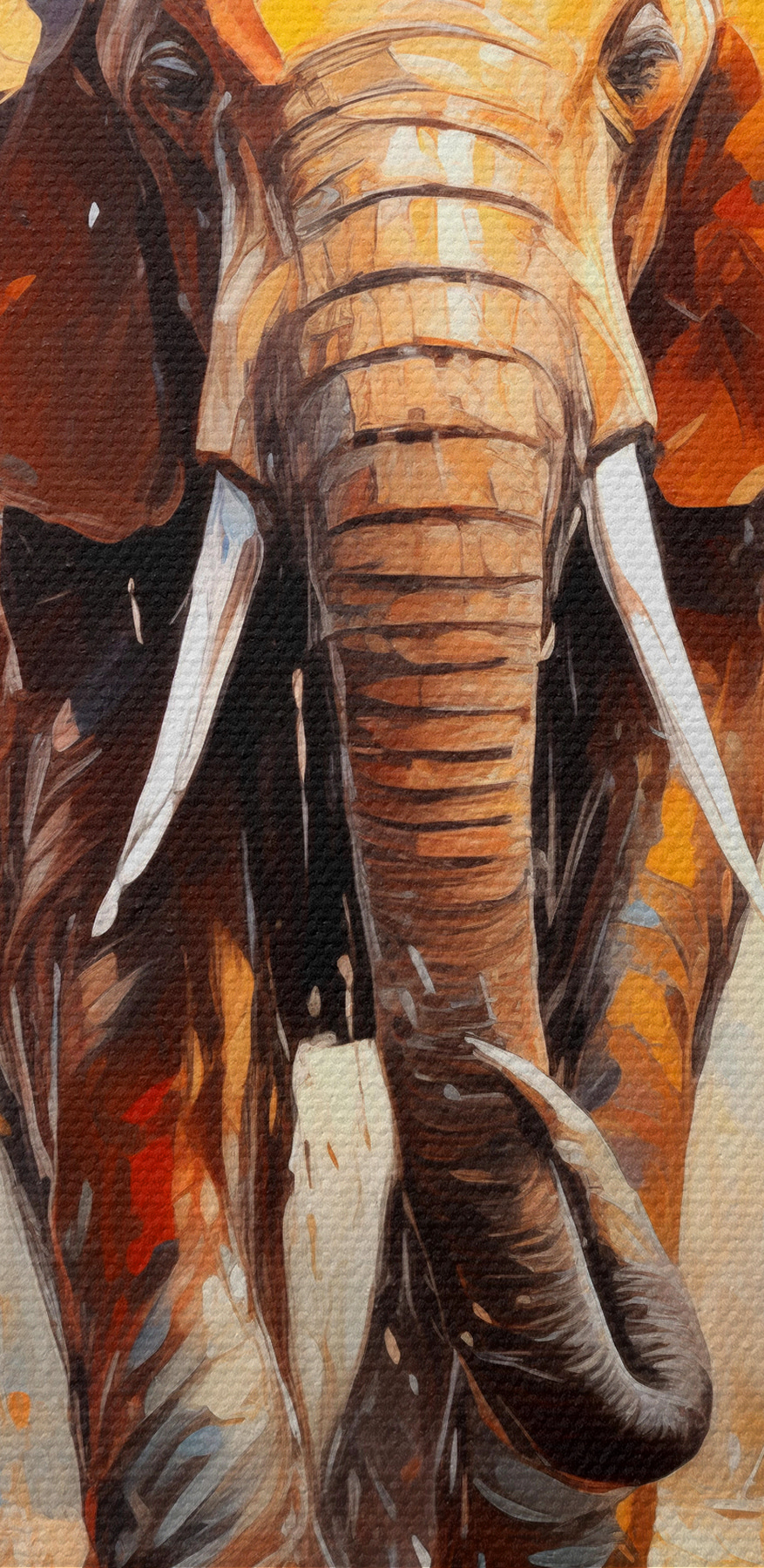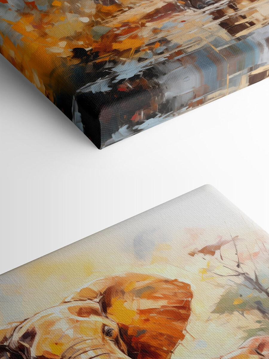 Stellen Sie sich vor, Sie hätten ein atemberaubendes Stück afrikanischer Wildnis direkt in Ihrem Wohnzimmer! Das ist “Wandbilder s39573” – ein außergewöhnliches Leinwandbild, das eher ein Abenteuer als eine Dekoration ist. Es zeigt majestätische Elefanten, die durch eine verträumte Landschaft marschieren, wobei sich ihre erdigen Töne mit leuchtenden Farbschüben vermischen. Man spürt förmlich, wie der Boden unter ihren kraftvollen Schritten bebt!