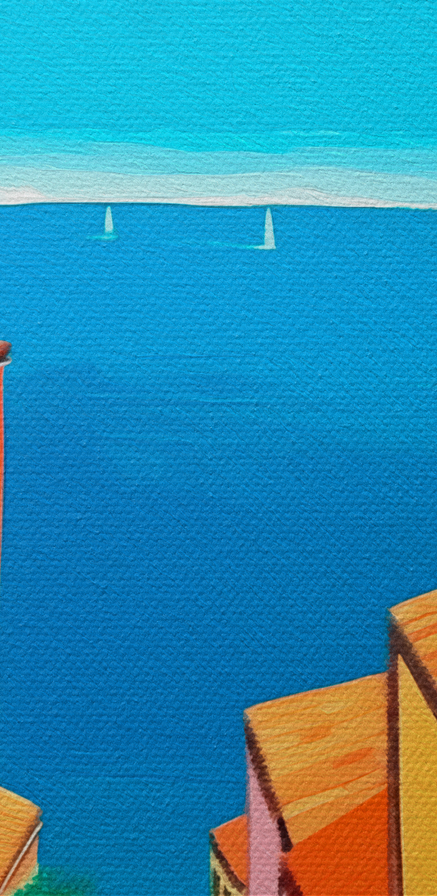 Stellen Sie es in Ihr Wohnzimmer, und es ist, als hätten Sie gerade ein Fenster zu einem malerischen Küstendorf geöffnet. Ihre Freunde werden Sie vielleicht sogar fragen, ob Sie heimlich im Urlaub waren! Es ist eine einfache Möglichkeit, Ihrer Einrichtung einen Hauch von Charme und ein bisschen Fernweh zu verleihen. Außerdem ist es vielseitig einsetzbar – egal, ob Sie eher ein Architektur- oder Naturliebhaber sind oder einfach nur einen Raum verschönern wollen, dieses Stück passt in alle Bereiche.