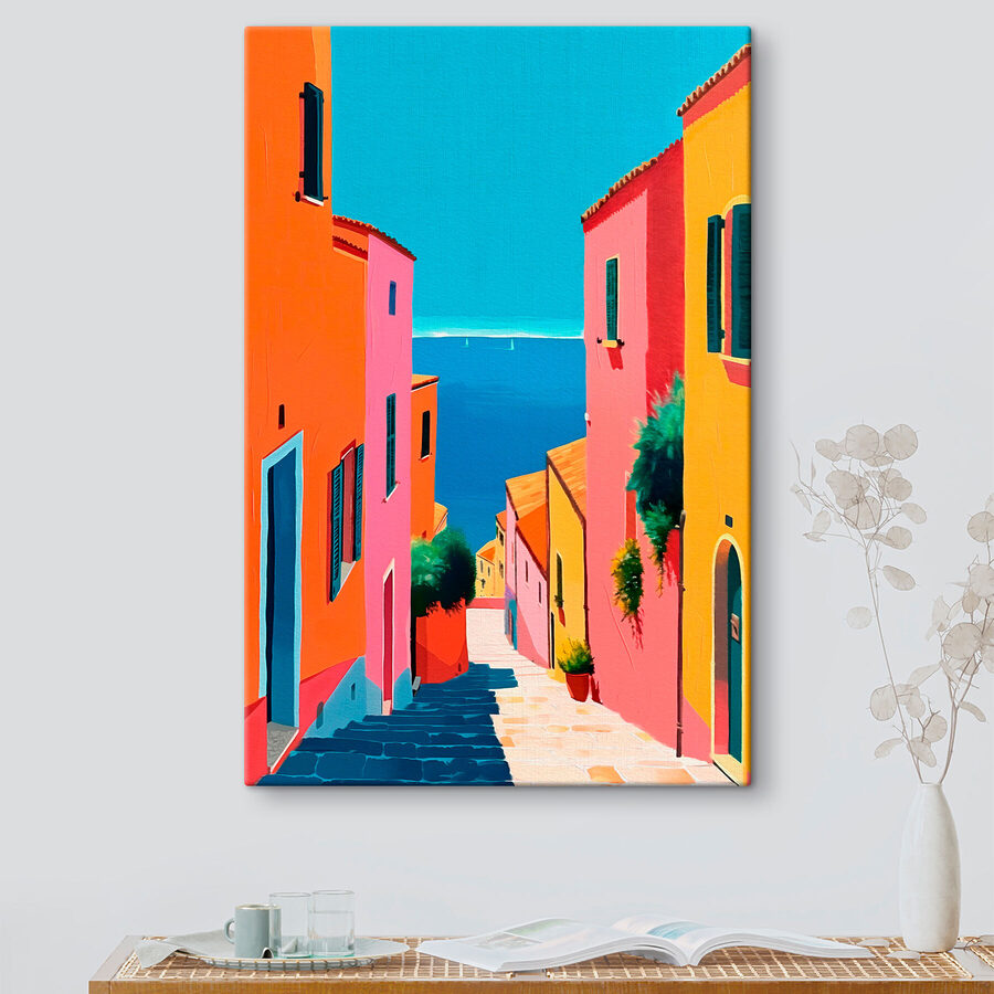 Stellen Sie sich vor, Sie spazieren durch eine sonnige Gasse in Süditalien – das ist so ziemlich das, was Sie mit diesem atemberaubenden Leinwanddruck bekommen. Das Bild “Wandbilder s39579” ist wie ein frischer Wind an Ihren Wänden, voller lebendiger Farben und einladendem mediterranem Flair. Die warmen Farben und das ruhige, blaue Meer im Hintergrund werden Sie jedes Mal, wenn Sie das Bild betrachten, an einen friedlichen, verträumten Ort versetzen.