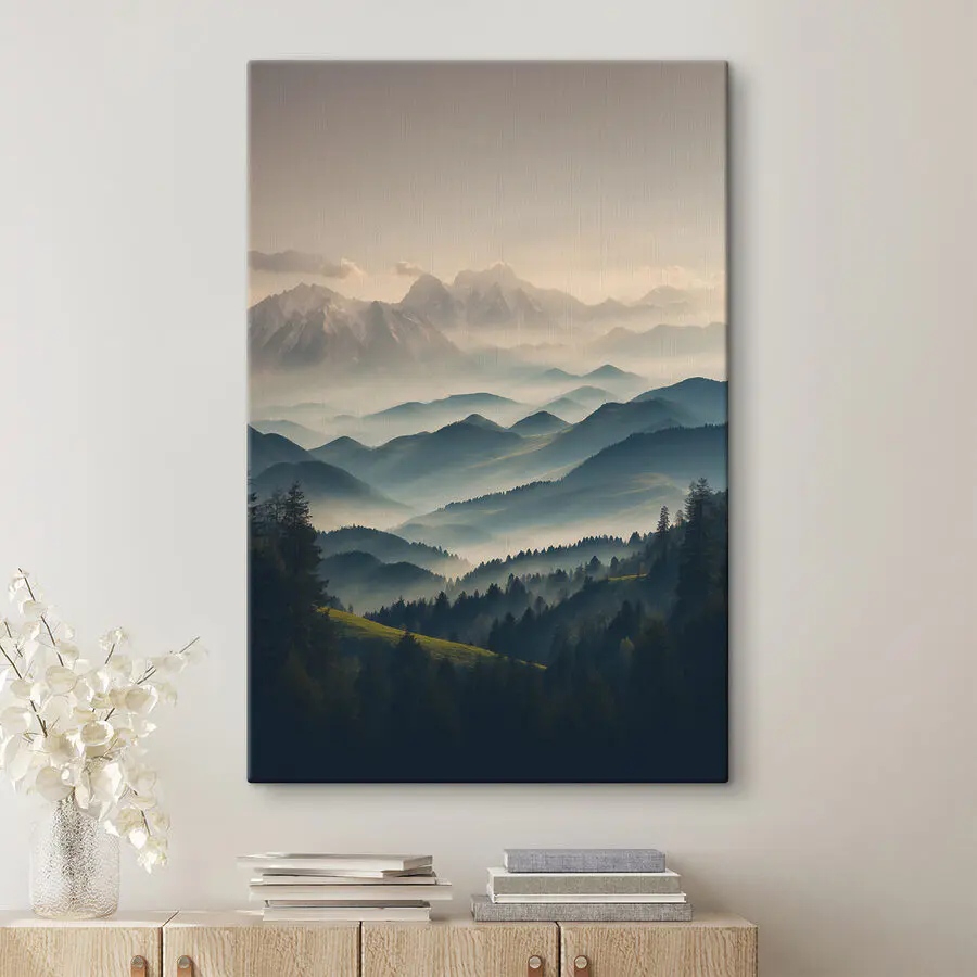 Verwandeln Sie Ihren Lebensraum mit diesem atemberaubenden “Wandbilder s39596”. Es ist, als würde man sich die Natur direkt nach Hause holen! Stellen Sie sich vor, Sie wachen jeden Tag mit dieser atemberaubenden Aussicht auf – diese sanften Hügel und nebligen Berge sind pure Magie. Es fühlt sich an, als könnten Sie einfach in die Szene hineingehen und die frische Luft einatmen.