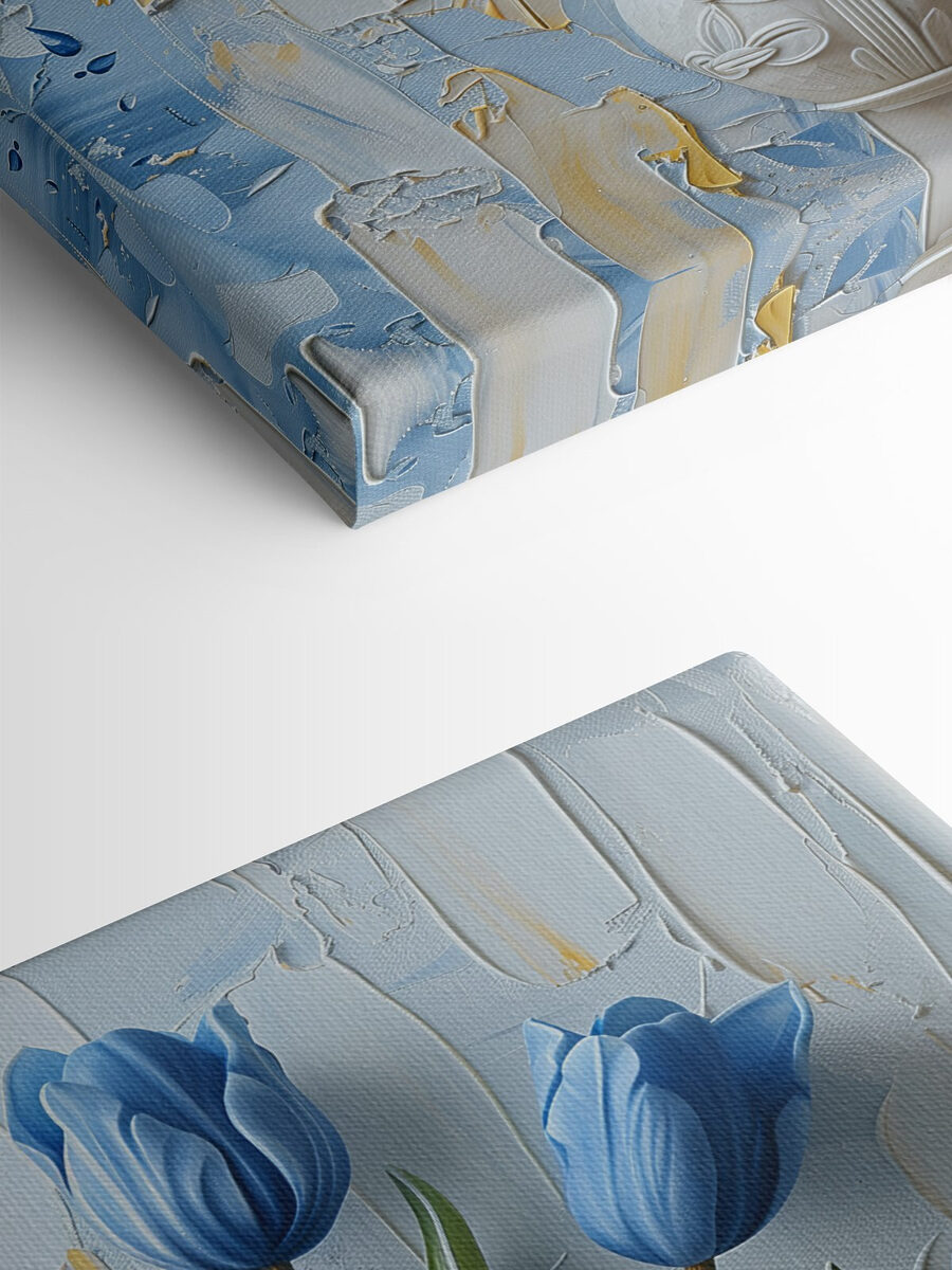 Dieser hübsche Leinwanddruck mit einer Vase voller blauer Tulpen bringt frischen Wind in jeden Raum. Es ist, als ob man sich den Frühling ins Haus holt, ohne dass man niesen muss. Die leuchtenden Farben heben sich von einem sanften Hintergrund ab und schaffen eine einladende Atmosphäre, die Herzen erwärmt. Stellen Sie sich dieses hübsche Kunstwerk in einer gemütlichen Ecke vor, wo es jedes Mal, wenn jemand vorbeikommt, Freude und Gespräche auslöst. Perfekt für alle, die Blumen zu schätzen wissen, aber vielleicht keinen grünen Daumen haben. Außerdem erinnert es daran, innezuhalten und an den Tulpen zu riechen – im übertragenen Sinne natürlich. Hängen Sie sie einfach auf und lassen Sie die guten Gefühle fließen!