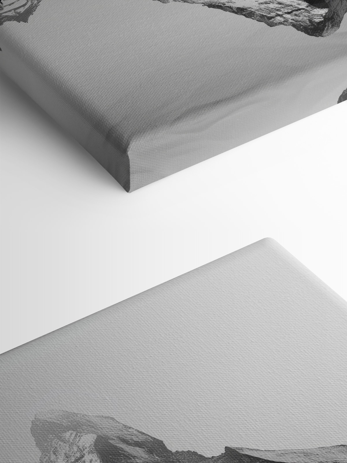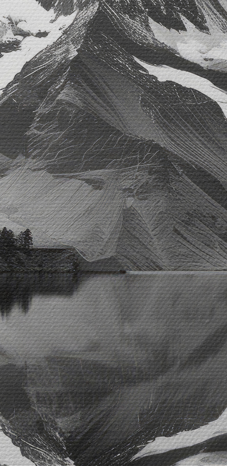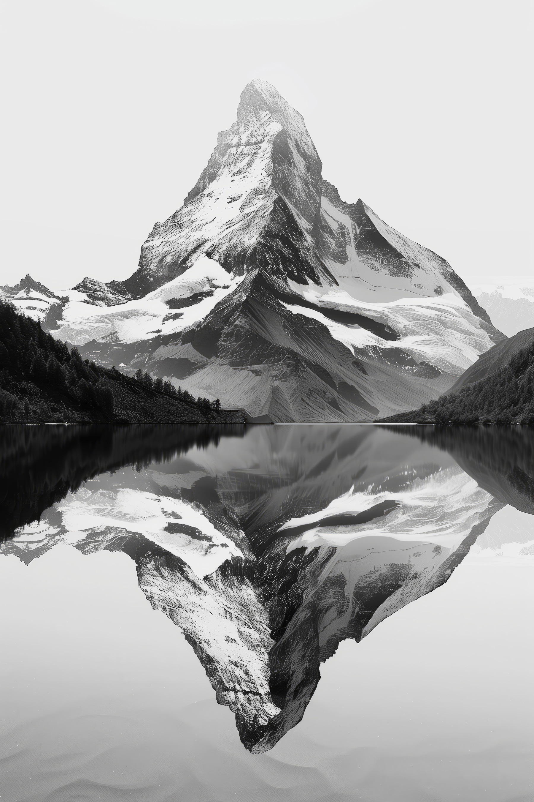 Berge, die sich perfekt im Wasser spiegeln? Pure Magie. Es hat die klassische schwarz-weiße Ausstrahlung, die jedem Raum ein ruhiges und elegantes Gefühl verleiht. Man kann fast die kühle Bergluft spüren und das sanfte Plätschern des Wassers hören. Stellen Sie sich dieses Bild in Ihrem Wohn- oder Schlafzimmer vor – es ist wie ein Fenster in die Wildnis, direkt von Ihrer Couch aus!