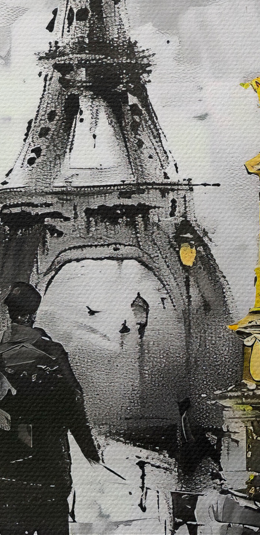 Stellen Sie sich vor, Sie treten in eine Welt ein, in der die schwarz-weiße Eleganz eines Filmklassikers auf das pulsierende Herz einer belebten Stadt trifft. Dieser Leinwanddruck “s39692” fängt diesen Zauber ein. Als wären Sie direkt in Paris gelandet – ohne den Jetlag -, werden Sie sich in der Romantik der Stadtlandschaft verlieren. Die Liebenden in der Szene wirken wie alte Freunde, die unter dem vertrauten Schatten des Eiffelturms schlendern. Es gibt einen Hauch von Farbe – gerade genug, um den monochromen Zauber zu brechen und alles mit Leben zu füllen. Perfekt für die Wohnzimmerwand oder über der gemütlichen Leseecke, in der man die Hälfte der Zeit vergisst, zu sitzen. Dieses Bild ist nicht einfach nur ein Bild, es ist ein Gesprächsanlass – ein kleines Stück Pariser Tagträumerei.