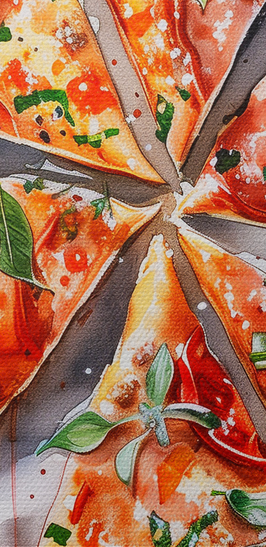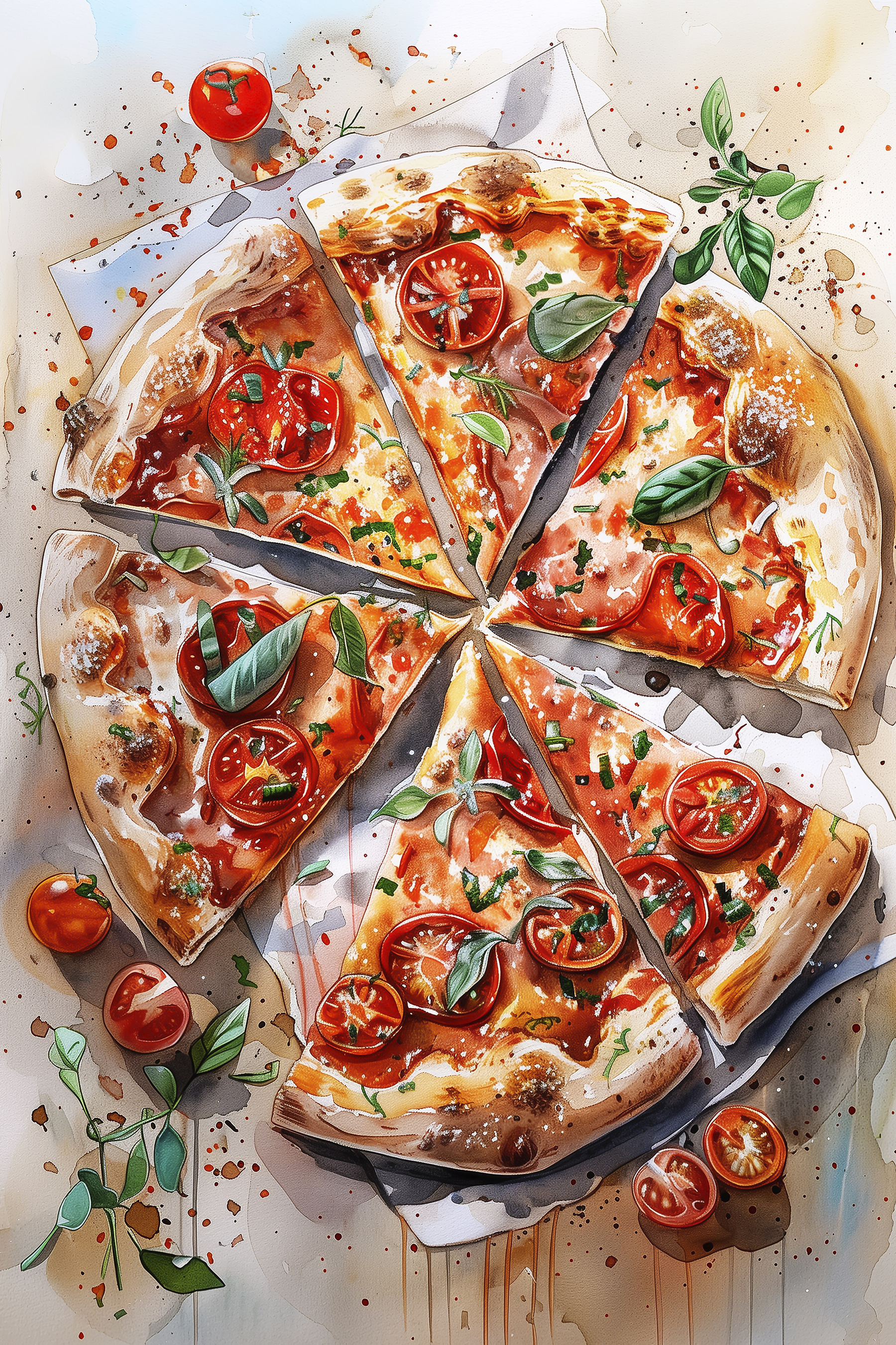 Bringen Sie etwas Geschmack an Ihre Wände mit diesem herrlichen Aquarell-Leinwanddruck von Pizza. Stellen Sie sich dieses Bild als eine warme Umarmung für Ihre Küche oder Ihren Essbereich vor, die jedes Mal, wenn Sie es betrachten, gute Laune ausstrahlt. Die leuchtenden Tomaten und das frische Basilikum schreien förmlich nach “Essenszeit”, oder? Es ist, als hätte der Künstler den perfekten Moment eingefangen, in dem die Käsescheibe gerade vom Teller gleitet. Das Bild ist perfekt für Feinschmecker und regt mit Sicherheit Gespräche und vielleicht auch den einen oder anderen Heißhunger an. Hängen Sie es auf und lassen Sie sich daran erinnern, dass das Leben – wie eine gute Pizza – besser ist, wenn man es teilt. Verwandelt jeden Raum sofort in einen gemütlichen Ort der Zusammenkunft. Wer würde das nicht wollen?