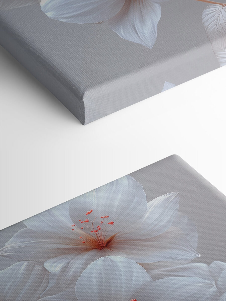 Die sanften Farbtöne der Blütenblätter und die kleinen korallenroten Farbtupfer an den Staubgefäßen wirken so beruhigend, fast wie eine visuelle Umarmung. Perfekt für jeden Raum, der einen Hauch von Ruhe und Schönheit braucht. Stellen Sie sie in Ihre Leseecke oder an den Platz in Ihrem Schlafzimmer, an dem Sie Ihren Morgenkaffee genießen. Es ist ein Bild, das zum Träumen von sonnigen Gärten und sanften Brisen einlädt. Dieser Druck ist mehr als nur Dekoration – er ist eine Erinnerung an die Eleganz und Einfachheit der Natur, direkt in Ihrem Zuhause.