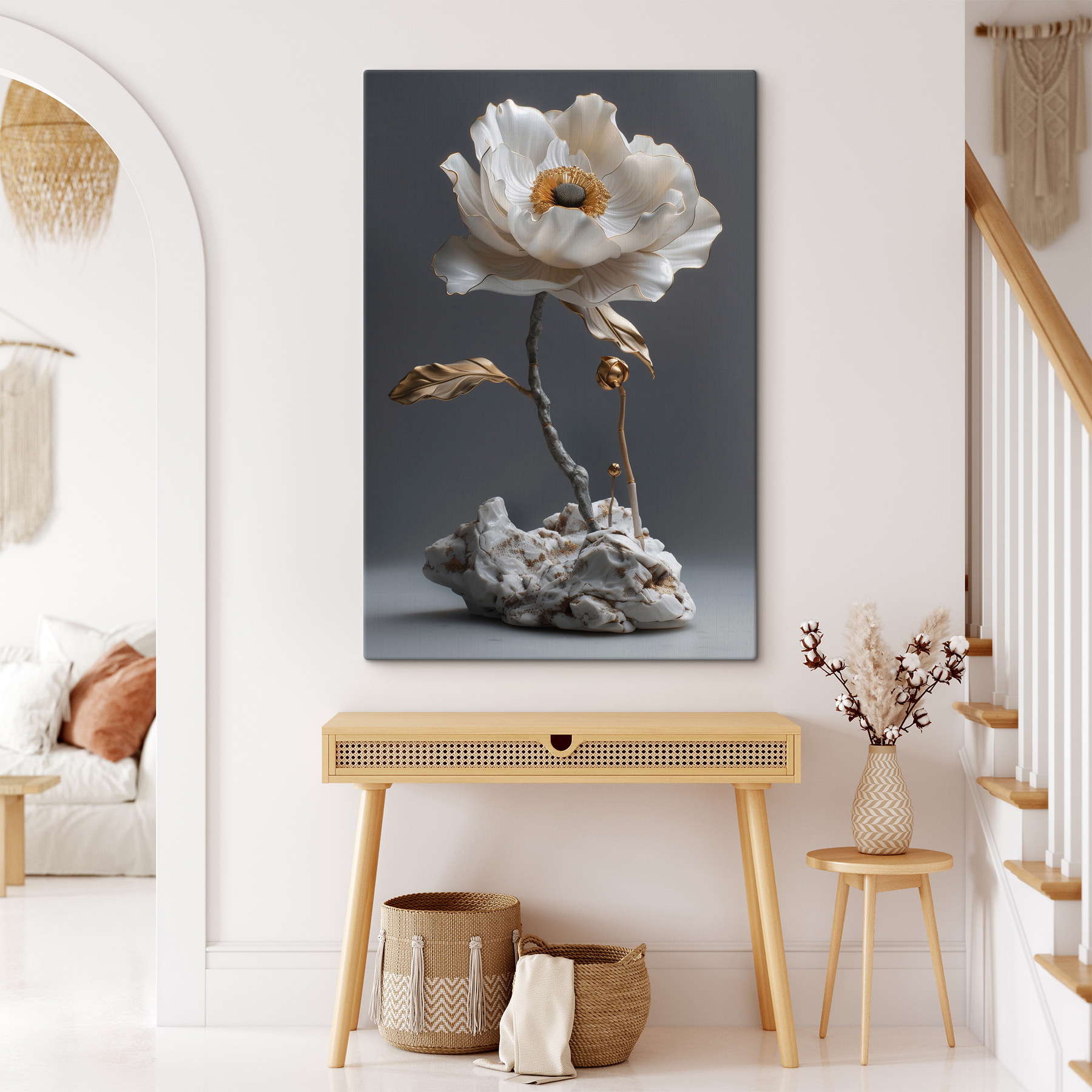 Wir stellen vor: “Elegant Bloom in Gleaming Splendor” – ein Leinwanddruck, der wie ein kleines Geheimnis der Natur ist, direkt an Ihrer Wand. Stellen Sie sich vor: eine atemberaubende Blume mit weichen Blütenblättern, die sich in einer sanften Brise zu wiegen scheinen. Es ist fast so, als würde sie Sie dazu einladen, einen Moment innezuhalten, einfach zu atmen und die Schönheit um Sie herum zu genießen. Dieses Stück ist ideal, um in jedem Raum eine ruhige Atmosphäre zu schaffen, und verleiht ihm einen Hauch von Laune und Charme. Stellen Sie sich vor, wie Sie an einem ruhigen Morgen einen Schluck Kaffee trinken und dabei dieses herrliche Blumenwunder betrachten. Es ist Kunst, die flüstert: “Willkommen zu Hause”. Glauben Sie mir, bei diesem Schmuckstück wird sich jeder fragen, wo Sie es gefunden haben!