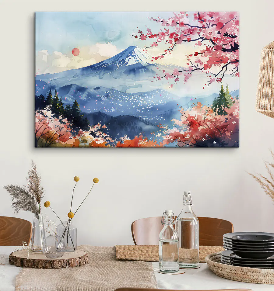 Stellen Sie sich vor, Sie wachen jeden Tag mit einer solchen Aussicht auf! “Wandbilder s39775” bringt ein Stück heitere Natur direkt in Ihren Wohnraum. Es ist wie ein Mini-Urlaub – nur ohne das Packen und den Jetlag. Die frische Bergluft, der strahlende Sonnenaufgang und diese zarten rosa Blüten… Man spürt förmlich, wie die zarten Blütenblätter über die Haut streichen, und hört das Rauschen des Windes in den Bäumen. Ein idealer Ort für alle, die der Hektik schnell entfliehen wollen.
