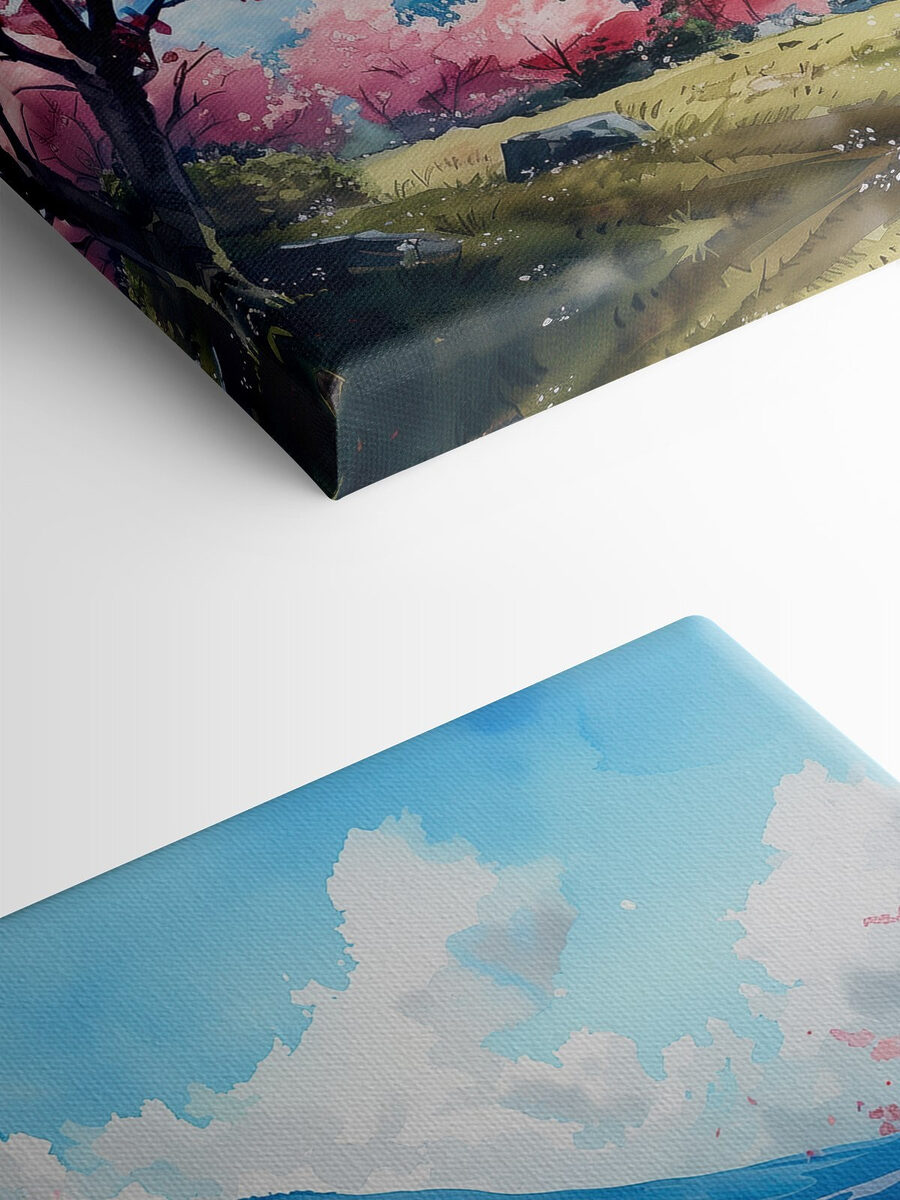 Sehen Sie sich dieses Stück an – Leinwanddrucke s39777. Es ist, als hätte man ein Fenster zu einer verträumten Flucht direkt zu Hause. Stellen Sie sich vor, Sie kommen nach einem langen Tag nach Hause und ein Blick auf diese heitere Aussicht auf die Berge mit den blühenden Kirschblüten lässt den Stress von Ihnen abfallen. Es ist nicht nur Kunst, es ist eine Symphonie der Natur, die eine beruhigende Melodie an Ihrer Wand spielt.