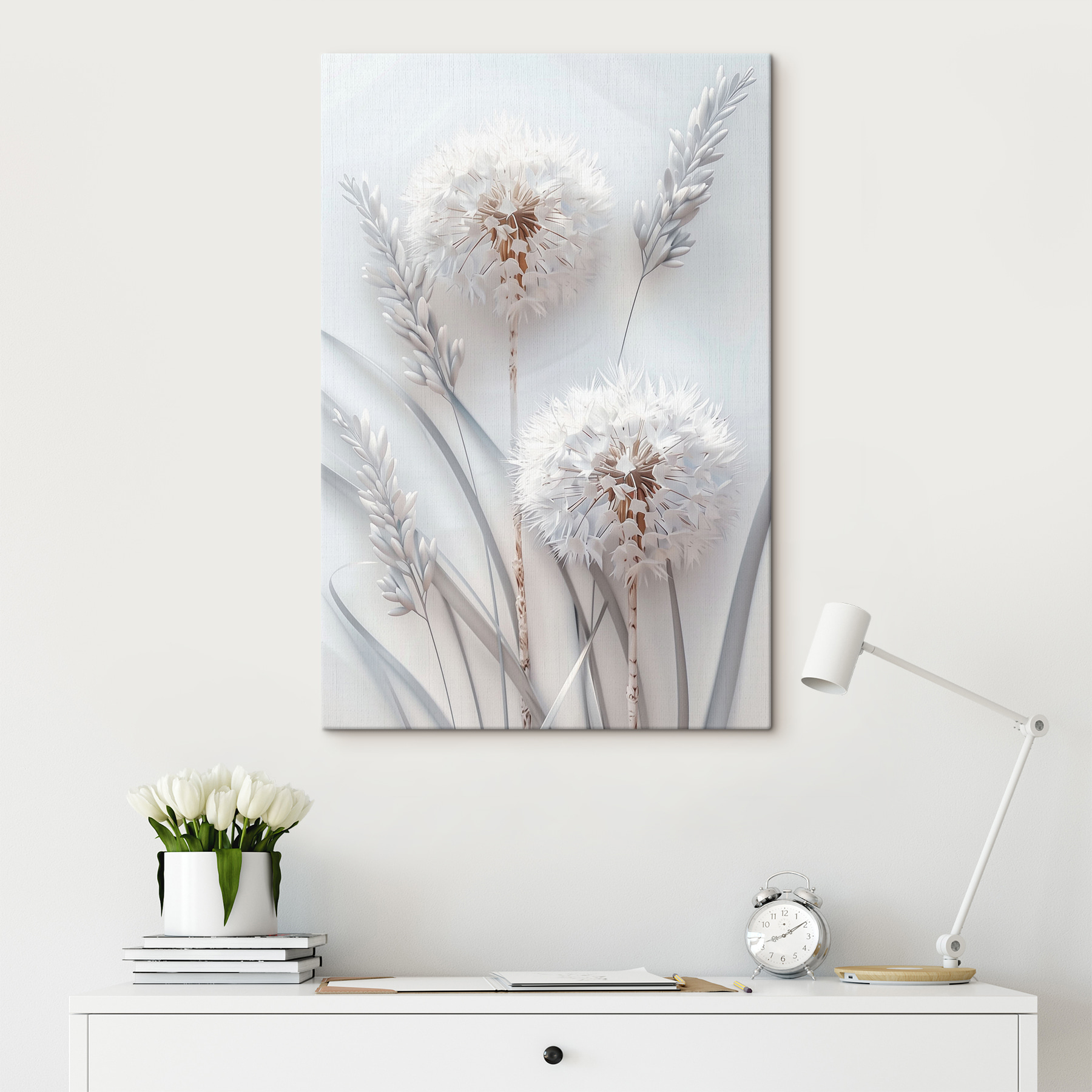 Dieses Bild passt perfekt in jeden Raum, der sich nach etwas Natur und Ruhe sehnt, und gehört in die Kategorien “Blumen-Leinwandkunst”, “Natur-Leinwandkunst” und “Beliebte Leinwandkunst”. Es ist die Art von Kunst, bei der man sich mit einer Tasse Tee (oder Wein!) zurücklehnen und einfach nur durchatmen möchte. Man kann die Sanftheit und Leichtigkeit dieser Pusteblumen fast spüren – wie ein Flüstern der Natur, das ins Haus gebracht wird.
