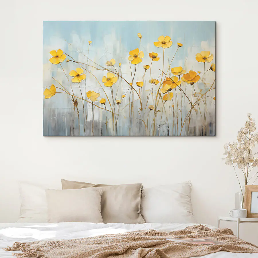Sind Sie jemals an einem windigen Tag über eine Wiese gelaufen und haben dabei ein überwältigendes Gefühl der Ruhe verspürt? Das ist genau das, was “Wandbilder s39823” in jeden Raum bringt. Dieses hübsche Leinwandbild zeigt fröhliche gelbe Blumen, die sich sanft vor einem zartblauen Hintergrund wiegen – es ist, als ob Sie einen perfekten Frühlingstag einfangen und an Ihre Wand hängen würden. Es passt in jeden Raum und verleiht ihm einen Hauch von Gelassenheit und den Charme der Natur.