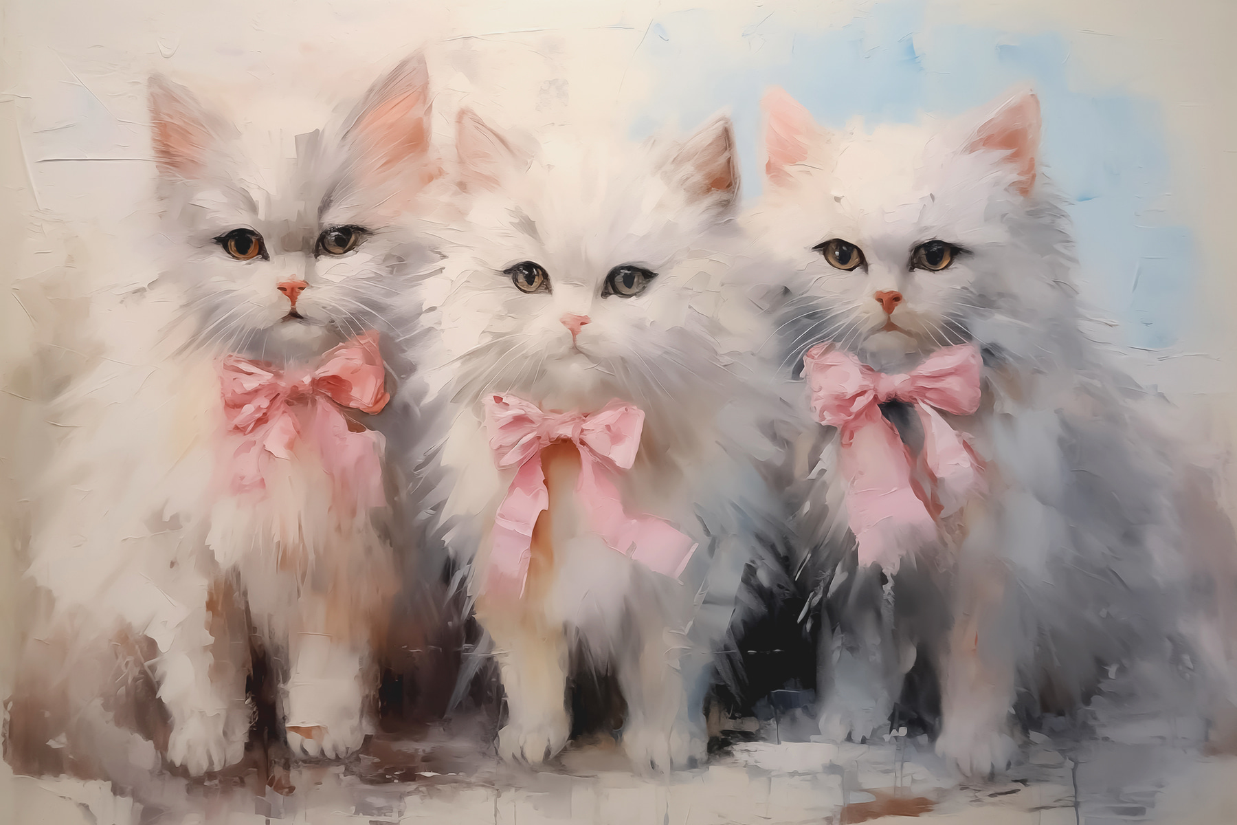 Stellen Sie sich vor – drei süße, flauschige Kätzchen, alle mit bezaubernden rosa Schleifen geschmückt, die direkt in Ihre Seele blicken. Das ist es, was Sie mit “Wandbilder s39826” bekommen! Dieses süße Katzentrio ist perfekt für Tierliebhaber und verleiht jeder Wand einen Hauch von Laune und Eleganz. Man kann sie fast schnurren hören. Freunde kommen herein und können sich ein Lächeln nicht verkneifen… ehrlich gesagt, es ist, als würden sie dich herausfordern, sie nicht zu lieben.