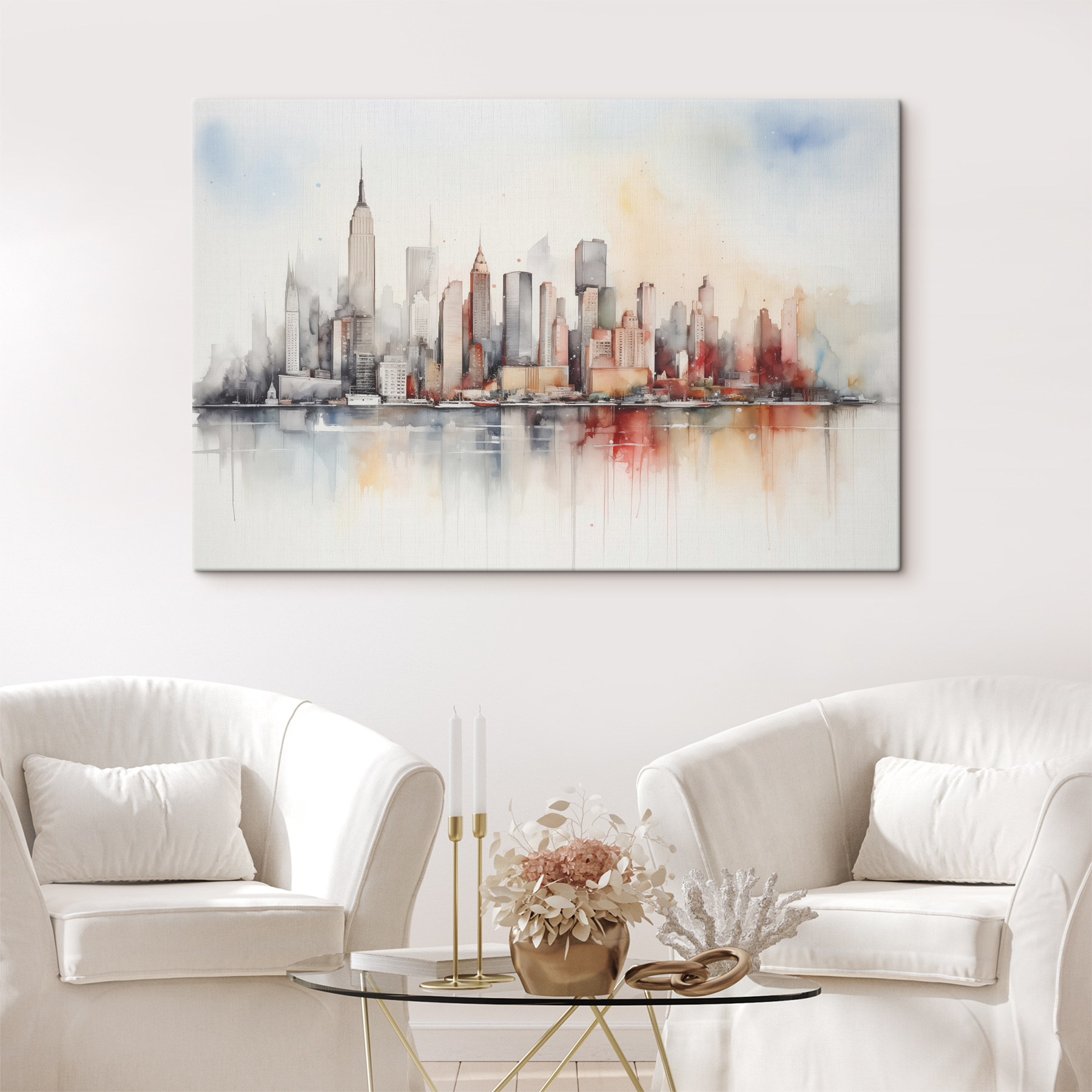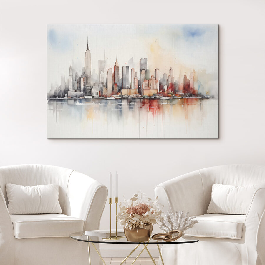 Stellen Sie sich vor, Sie wachen auf und sehen dieses atemberaubende Aquarell einer Stadtlandschaft, das Sie jeden Morgen begrüßt. Es ist, als würden Sie Ihren Kaffee vor einer nebligen Skyline schlürfen – Sie erwarten fast, die morgendliche Kühle zu spüren und das ferne Summen der Stadt zu hören. Dieses Bild verbindet die Ruhe der Aquarellmalerei mit dem Trubel des städtischen Lebens und verleiht Ihrem Raum eine coole, moderne Atmosphäre.