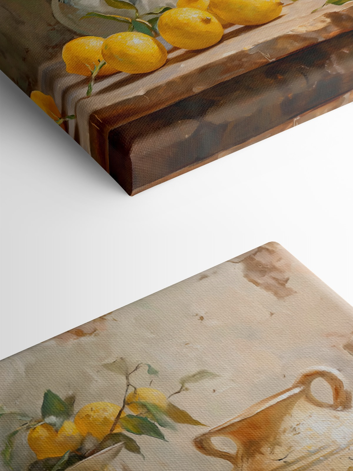 Verschönern Sie jeden Raum mit diesem charmanten Leinwanddruck, der eine reizvolle Szene mit Zitronen und Vasen auf einem rustikalen Tisch zeigt. Es ist wie ein Hauch von Sonnenschein direkt im Wohnzimmer. Stellen Sie sich vor, Sie nippen an einer Limonade, während Sie diese leuchtenden Gelbtöne betrachten – perfekt für die Tage, an denen Sie sich ein wenig Sommerstimmung wünschen, selbst im Winter. Es flüstert “frisch” und “lustig” und verleiht den Wänden, die eine Auffrischung brauchen, einen Hauch von Fröhlichkeit. Die Kombination aus schlichter Keramik und verspielten Zitronen sorgt für Gesprächsstoff, und jedes Detail zieht Sie in seine warme, sonnige Umarmung. Perfekt für alle, die einen Hauch von Farbe und einen Hauch von Laune in ihrer Einrichtung lieben.