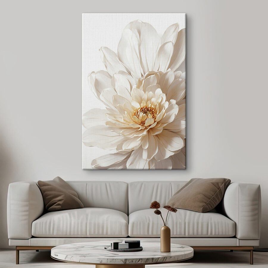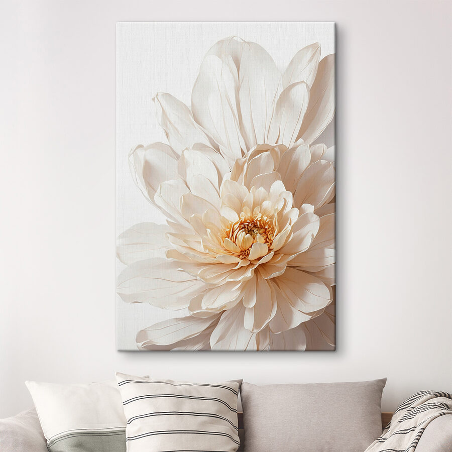 Sieh dir das an! Dieser atemberaubende Leinwanddruck mit seinen riesigen, cremefarbenen Blütenblättern, die sich öffnen, als hätten sie ein Geheimnis zu verraten, ist einfach traumhaft. Es ist perfekt für alle, die einen Hauch von Natur im Haus lieben, ohne sich um das Gießen von Pflanzen oder das Austauschen von Blumensträußen kümmern zu müssen. Stellen Sie sich vor, Sie wachen auf und trinken Ihren Kaffee, während diese elegante Blume Sie jeden Morgen grüßt… Können Sie sich die Gelassenheit überhaupt vorstellen?
