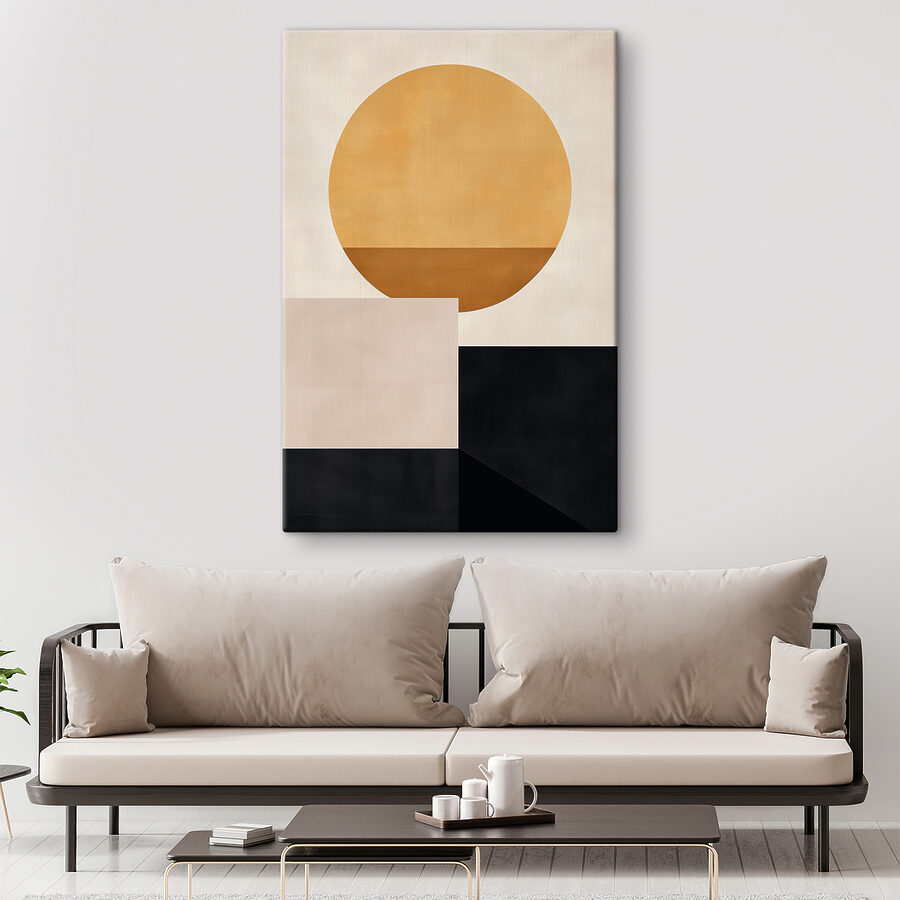 Beleben Sie Ihren Raum mit diesem auffälligen Stück – der gelbe Kreis vor dem Hintergrund markanter schwarzer Quadrate ist ein echter Blickfang. Stellen Sie sich vor, es würde in einer gemütlichen Ecke hängen oder ein lebendiges Wohnzimmer überblicken. Die Schlichtheit des Designs macht es zum perfekten Gesprächsanlass. Freunde werden von seiner verspielten Ausstrahlung angezogen, und vielleicht regt es sogar zu lustigen Diskussionen über abstrakte Kunst an. Es ist wie ein kleiner Sonnenstrahl, der ein fröhliches, modernes Gefühl in jeden Raum bringt. Wer hätte gedacht, dass Minimalismus so gut aussehen kann?