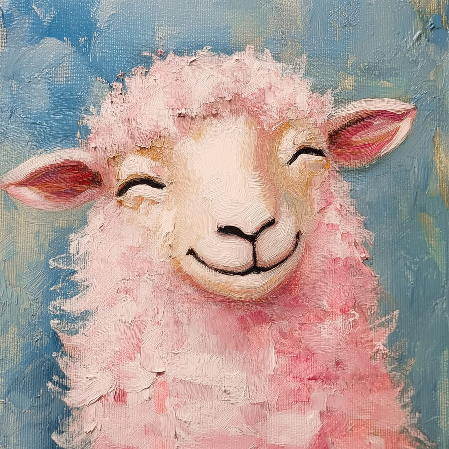 Verschönern Sie Ihren Raum mit einer entzückenden Abwandlung gewöhnlicher Dekoration. Dieses charmante rosa Schaf auf Leinwand strahlt Freude und Laune aus und ist perfekt für eine gemütliche Ecke oder ein verspieltes Wohnzimmer. Stellen Sie sich vor, Sie kommen nach einem langen Tag nach Hause, und dieses freundliche Gesicht begrüßt Sie mit einem warmen, frechen Lächeln. Es ist, als hätte man einen flauschigen Freund, der nicht gefüttert oder gestreichelt werden muss – nur bewundert. Die sanften Farbtöne und die lebendigen Pinselstriche fangen diesen unbeschwerten Geist ein und entfachen leichte Gespräche und ein Lächeln bei den Gästen. Wer hätte gedacht, dass ein Schaf so niedlich und stilvoll sein kann? Verleihen Sie Ihren Wänden einen Hauch von Persönlichkeit – es könnte der glücklichste Ort im Haus werden!