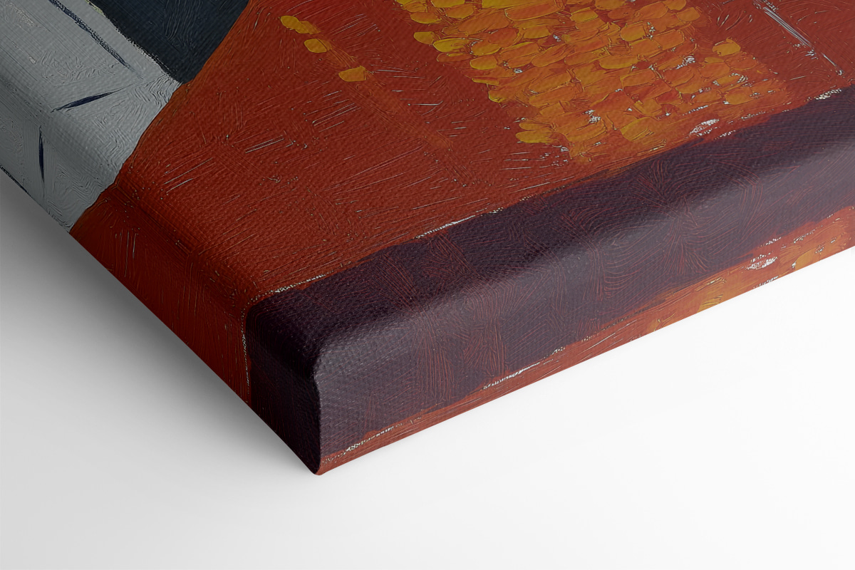 Stellen Sie sich vor, es hängt über Ihrem Esstisch oder in Ihrer Küchenecke. Ihre Gäste werden auf jeden Fall einen Blick darauf werfen und wahrscheinlich lächeln. Es hat etwas so Skurriles an sich, dass es fast wie ein Standbild aus einem skurrilen Indie-Film wirkt. Die kräftigen Farben, die raffinierte Komposition… all das zusammen ergibt eine Szene, die lebendig und einladend wirkt.