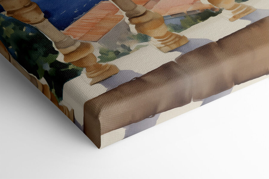 Haben Sie schon einmal davon geträumt, auf einen verträumten mediterranen Balkon zu entkommen, ohne Ihr Zimmer zu verlassen? Das ist der Zauber, den dieses Bild ausstrahlt! Stellen Sie sich strahlend weiße Lilien im Vordergrund vor, die Ihnen von einer sonnenüberfluteten Terrasse aus zuwinken. Sie können fast das leise Rauschen der Meereswellen hören und die sanfte Brise spüren, die durch die zarten Blütenblätter streicht. Es ist nicht nur Kunst – es ist ein kleiner Urlaub an Ihrer Wand. Perfekt, um Ihrem Wohnzimmer, Ihrem Schlafzimmer oder sogar Ihrem Büro einen Hauch von Ruhe zu verleihen – ein schneller Stimmungsaufheller! Und wer würde nicht gerne jeden Tag mit diesem Anblick aufwachen? Pure Glückseligkeit. 🌸🌊