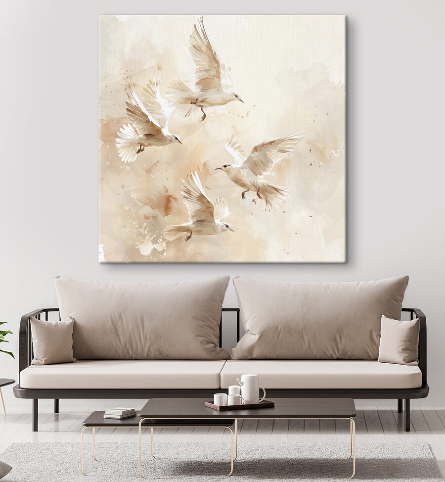 Stellen Sie sich vor, Sie wachen jeden Morgen mit diesem Bild auf – Sonnenlicht, das auf die Leinwand trifft und ein sanftes Leuchten erzeugt. Stellen Sie sich die Gespräche vor, die es bei Dinnerpartys auslösen wird! “Woher hast du das? Es ist wunderschön!” Und es hat einfach etwas Beruhigendes, diesen Flügeln beim Fliegen zuzusehen… fast meditativ, oder? Es ist nicht nur Kunst – es ist eine Flucht, eine Geschichte, ein Gefühl.