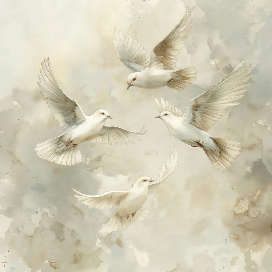 Stellen Sie sich vor, Sie hängen dieses atemberaubende Leinwandbild in Ihrem Wohnzimmer auf – und plötzlich wirkt der Raum lebendig! Das Bild “Wandbilder s39976” zeigt vier zarte Tauben im Flug, die mit einer solchen Anmut und Detailgenauigkeit eingefangen wurden, dass es fast so aussieht, als würden sie sich direkt von der Wand abheben. Die Aquarellmischung aus sanften Beige-, Creme- und Weißtönen verleiht dem Bild eine skurrile, fast verträumte Ausstrahlung – perfekt für alle, die sich gerne einen Hauch von Natur ins Haus holen.