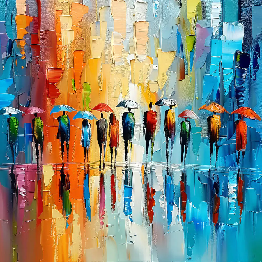 Tauchen Sie ein in eine lebendige Welt mit diesem atemberaubenden Leinwanddruck, der Menschen zeigt, die unter bunten Schirmen durchs Leben tanzen. Stellen Sie sich vor, Sie schlürfen einen Kaffee, während Sie die fröhliche Parade der Farben betrachten – jede Figur vermittelt ein Gefühl von Bewegung und Freude, fast so, als ob sie ihre Geschichten mit Ihnen teilen würde. Die spielerischen Kontraste zwischen den leuchtenden Schirmen und dem weichen Hintergrund erhellen jeden Raum. Es ist perfekt, um Gespräche anzuregen oder einfach einen Raum einladender zu gestalten. Ein bisschen Laune, ein Spritzer Farbe – wer würde darüber nicht lächeln wollen? Lassen Sie dieses Stück Ihren Tag erhellen, ob bei Regen oder Sonnenschein!